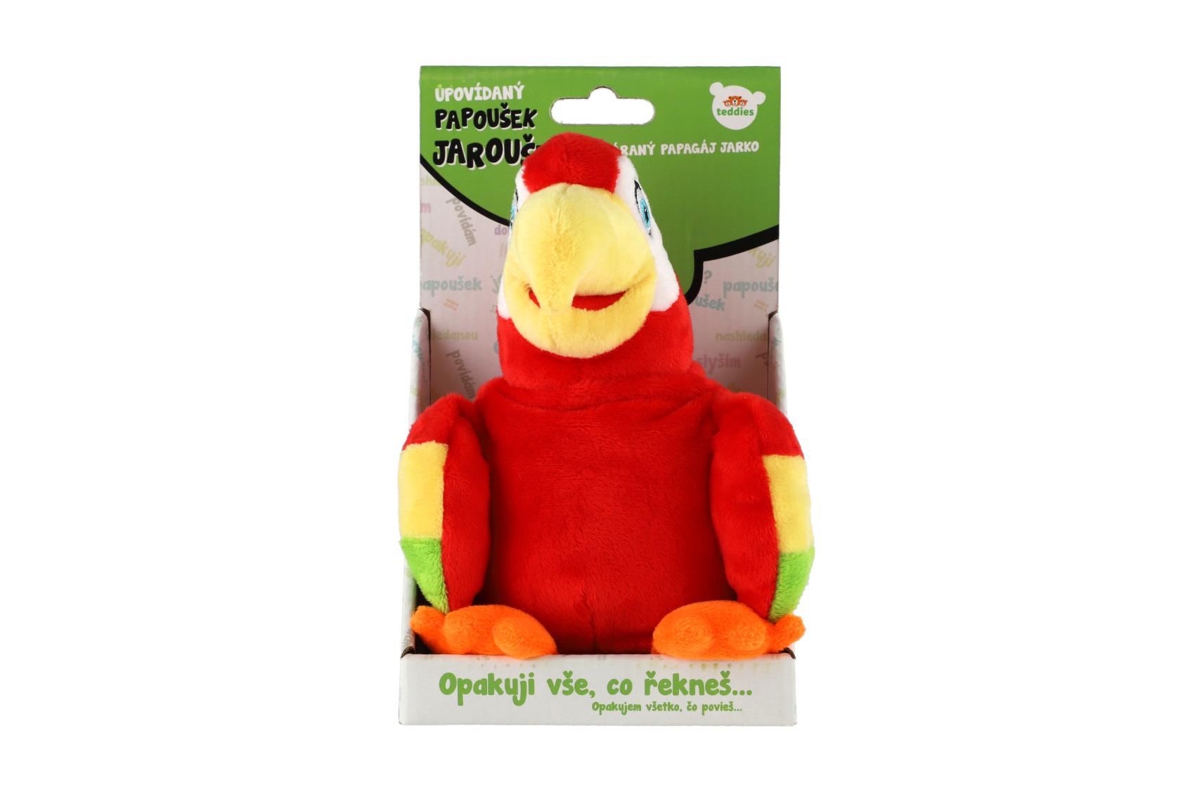 Papoušek Jaroušek opakující věty plyš 16cm na baterie se zvukem v krabici 12x20x10cm v sáčku