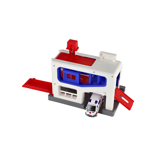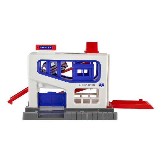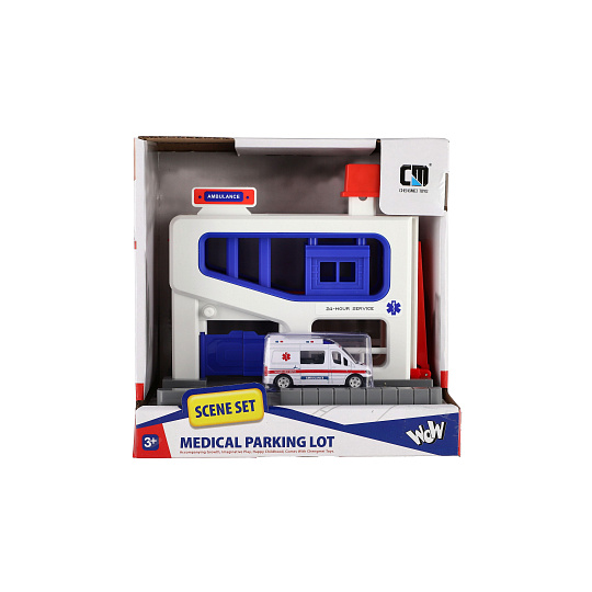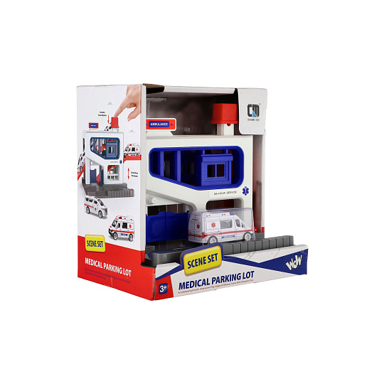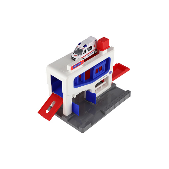 Parkovací garáž + auto ambulance plast v krabici 20x20x14cm