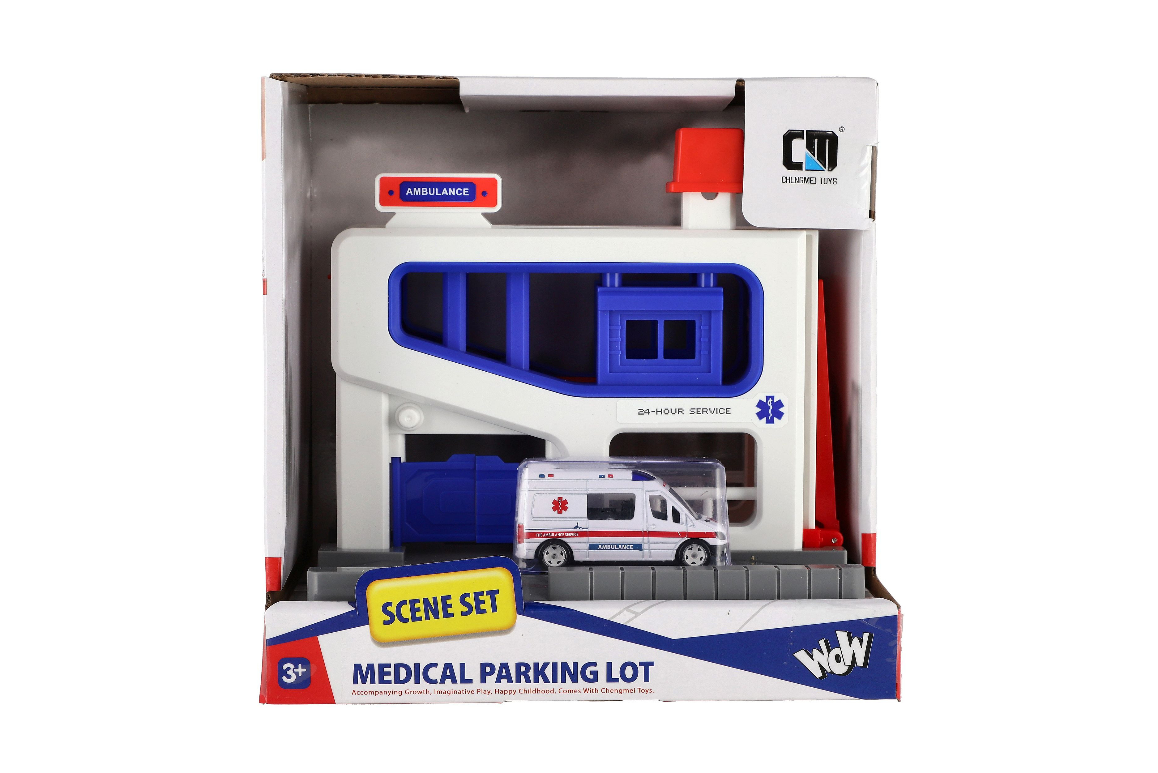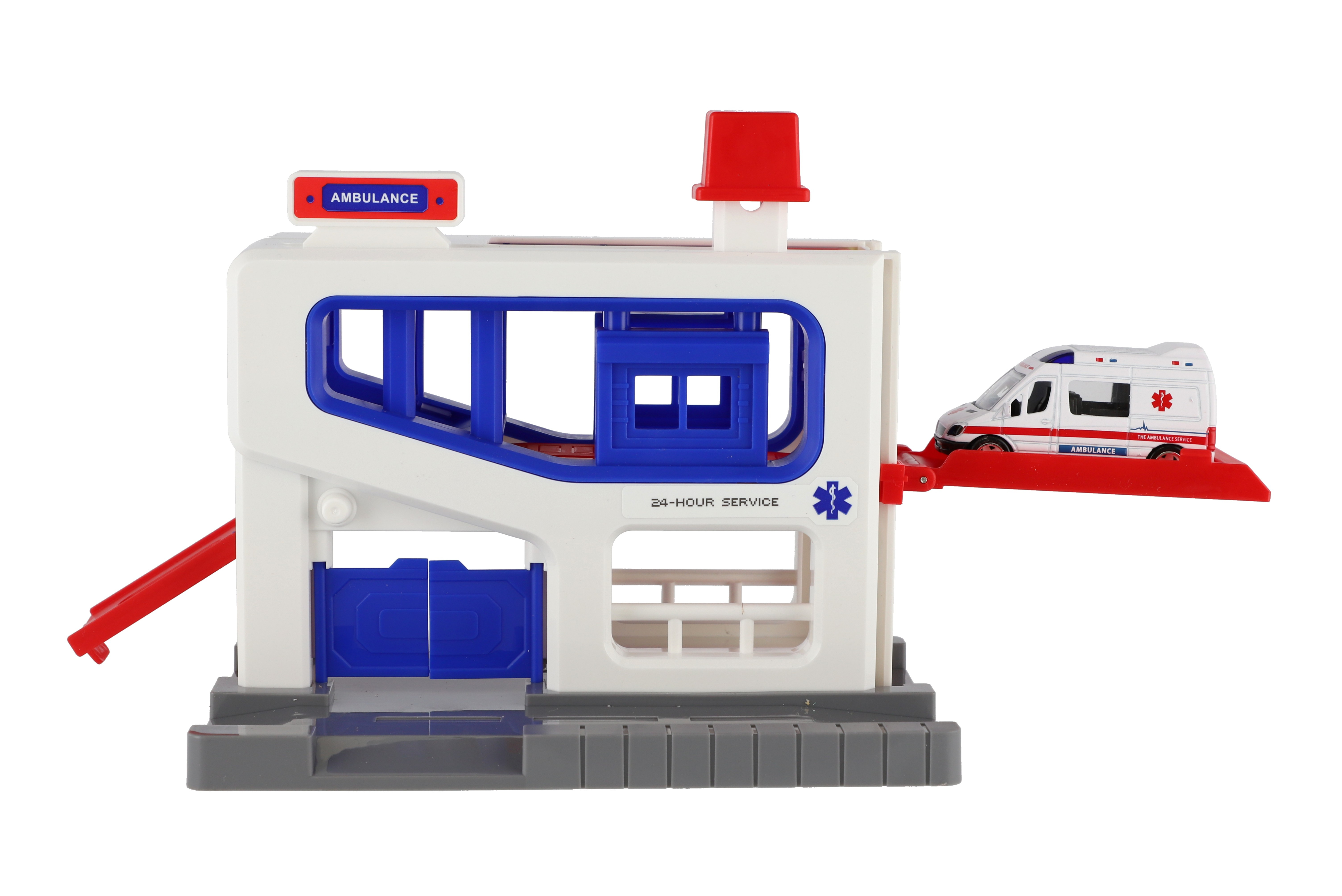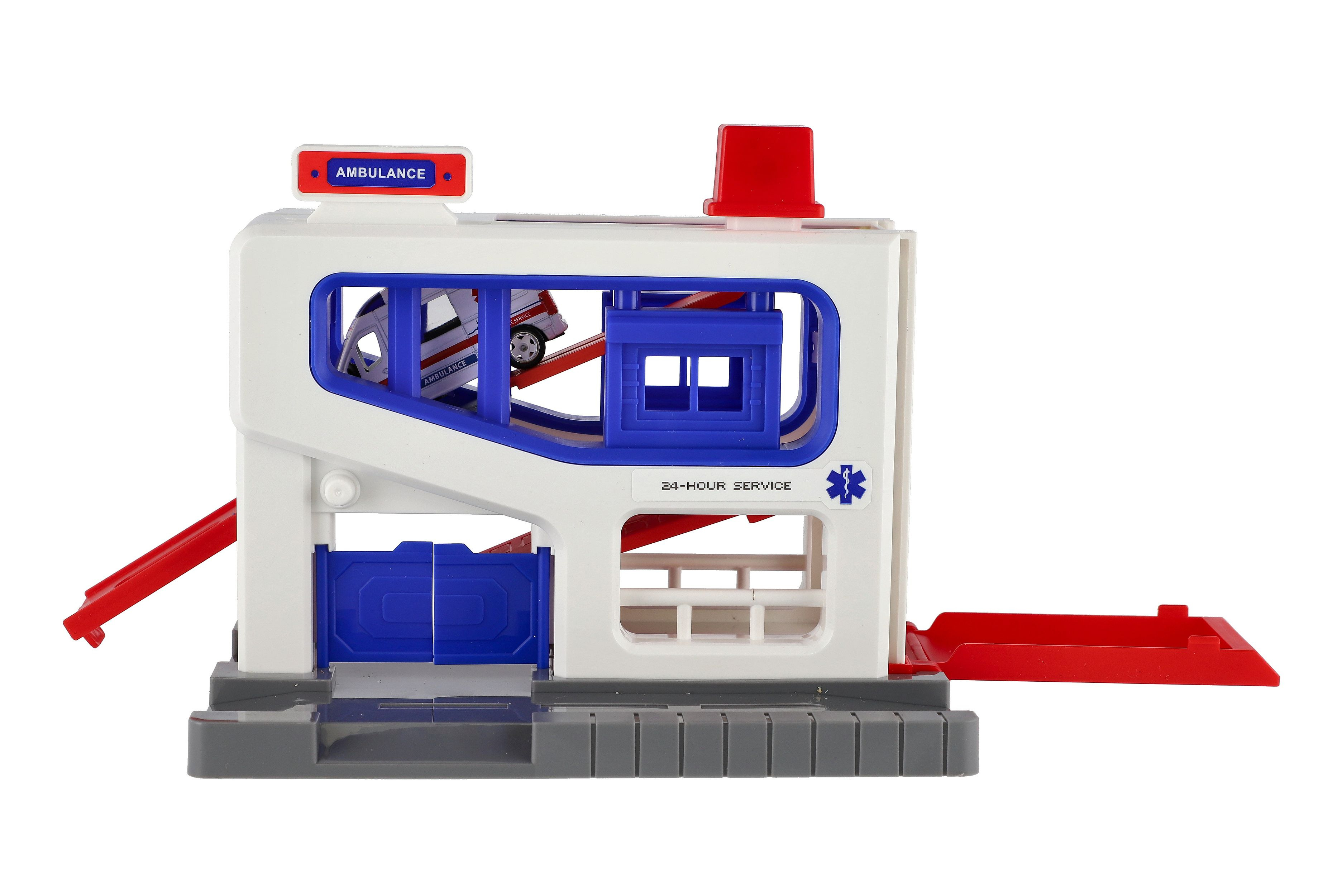 Parkovací garáž + auto ambulance plast v krabici 20x20x14cm