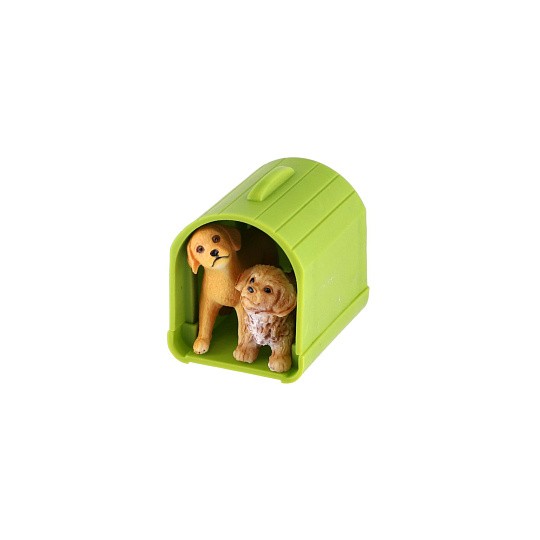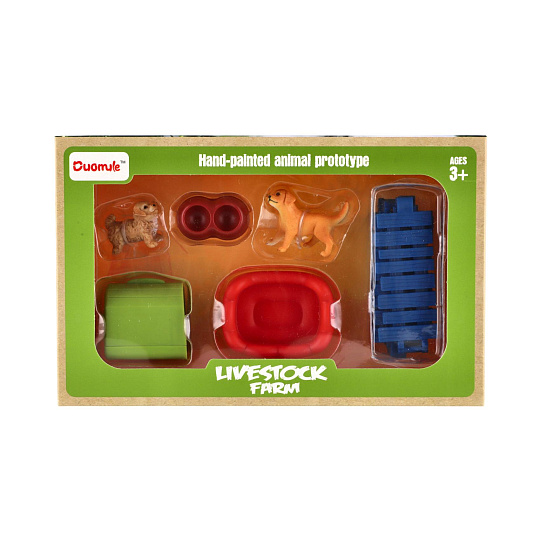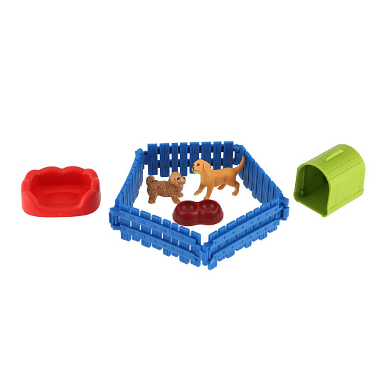 Pejskové/Pes 2ks s plotem plast s doplňky v krabici 23x14,5x4,5cm