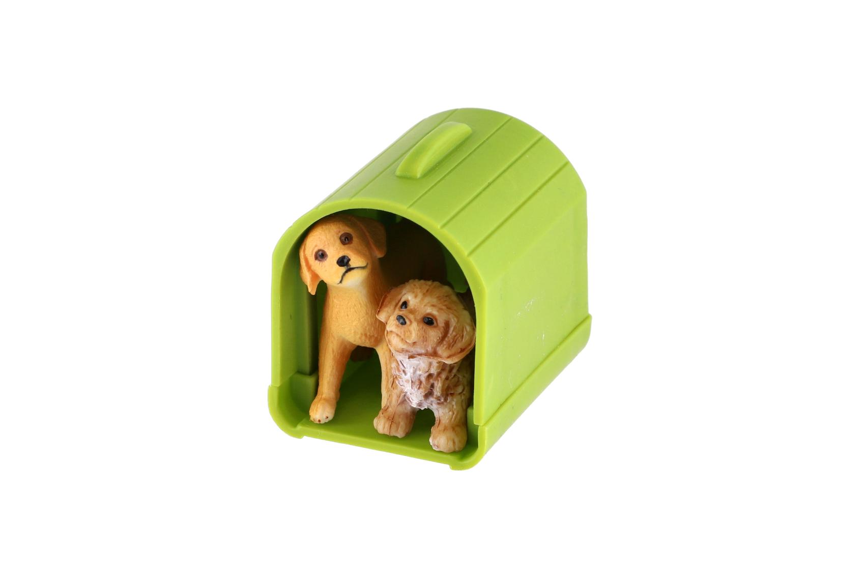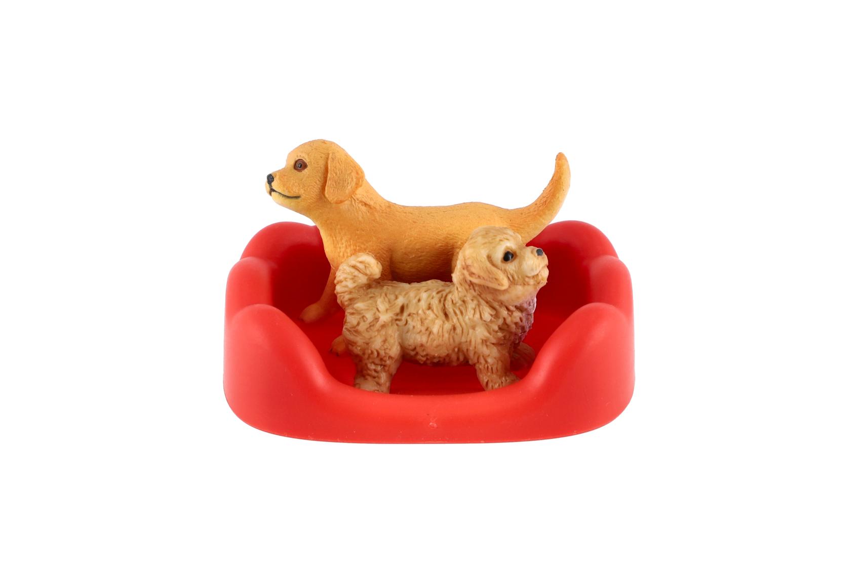 Pejskové/Pes 2ks s plotem plast s doplňky v krabici 23x14,5x4,5cm