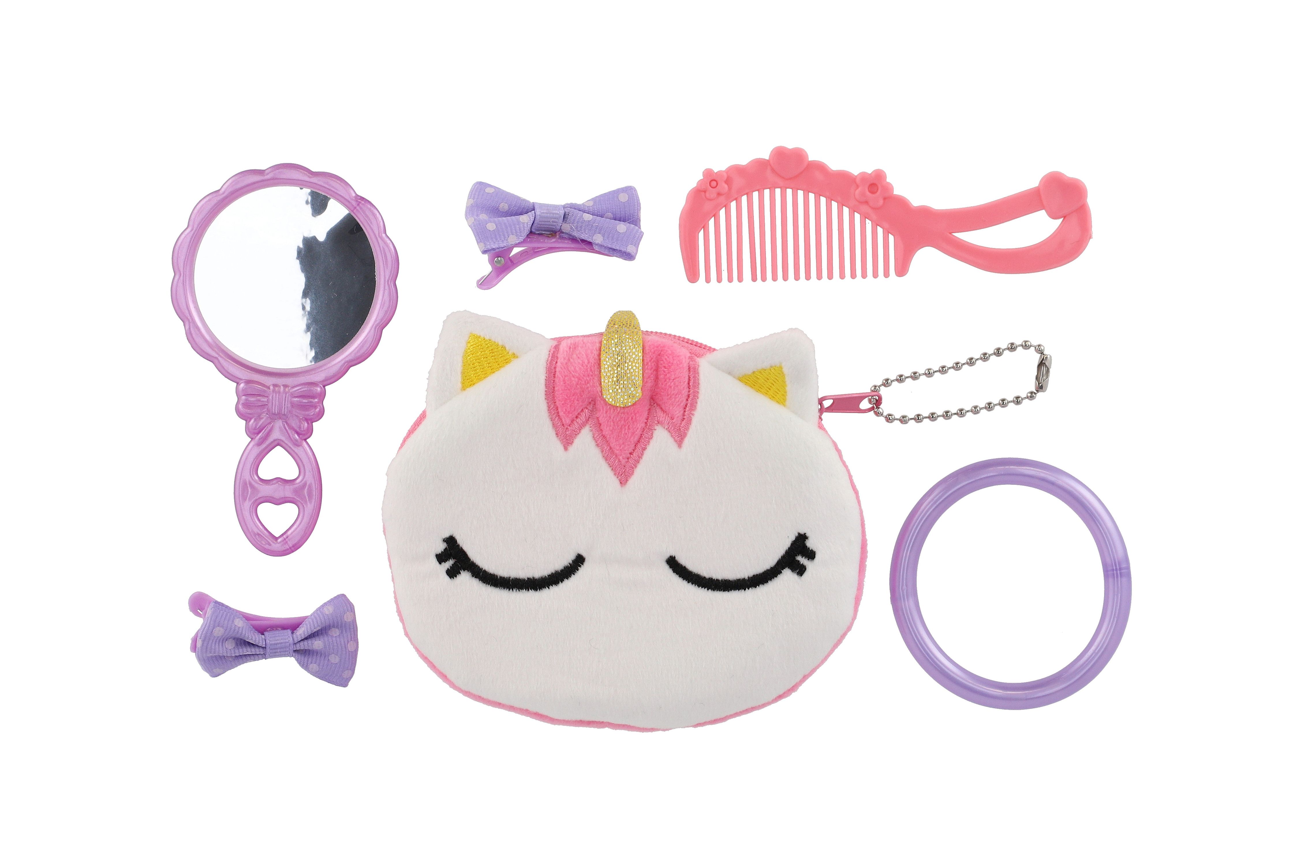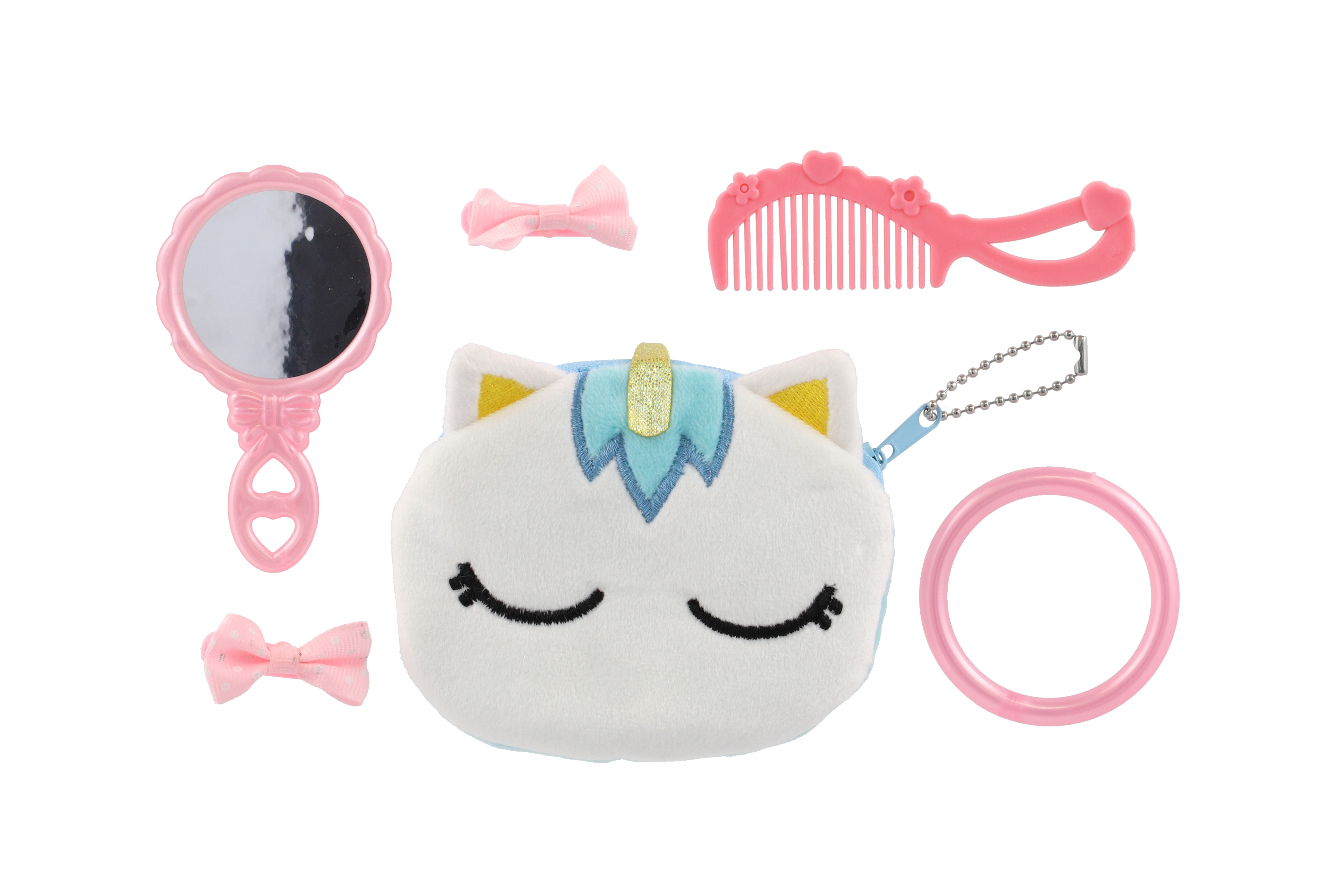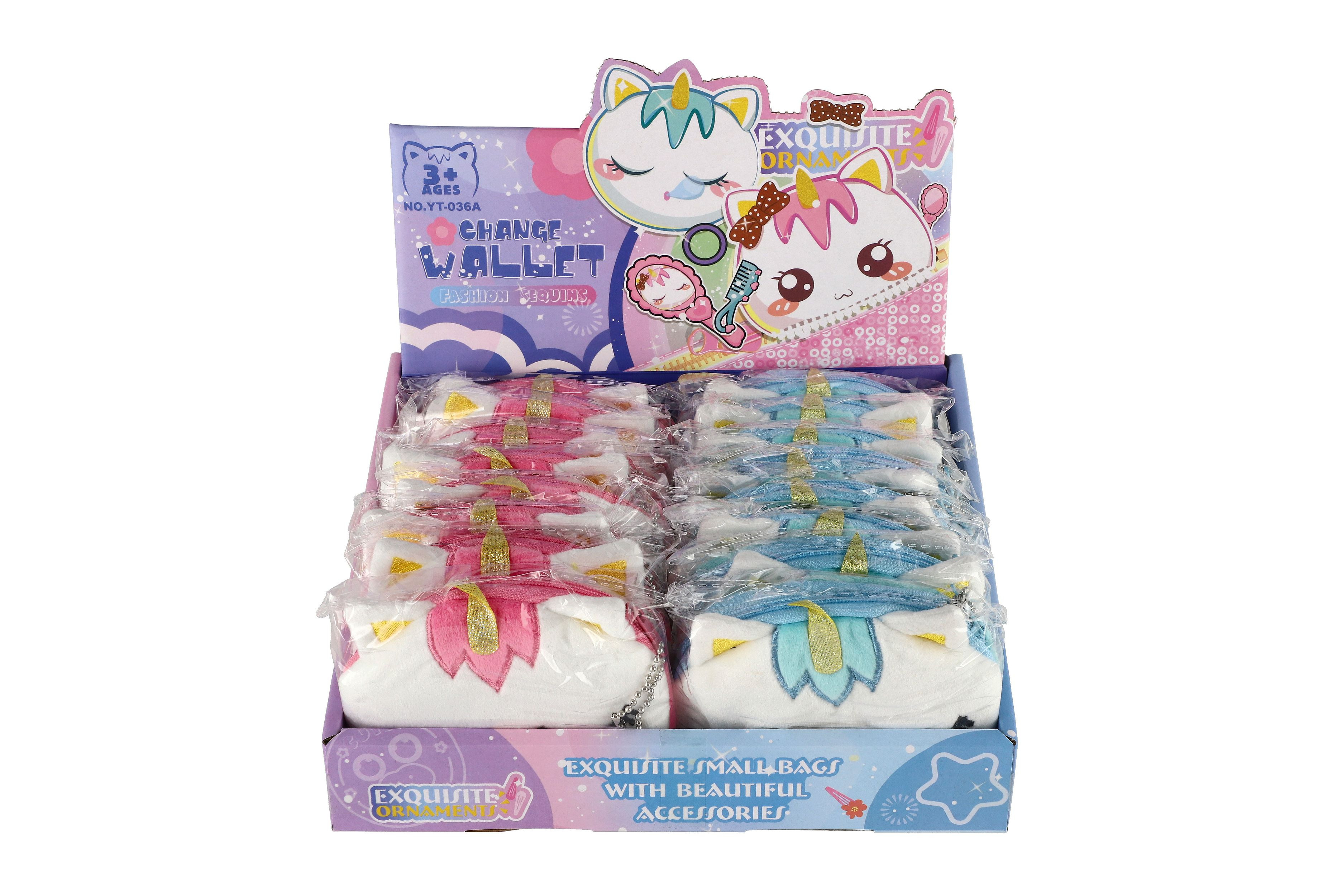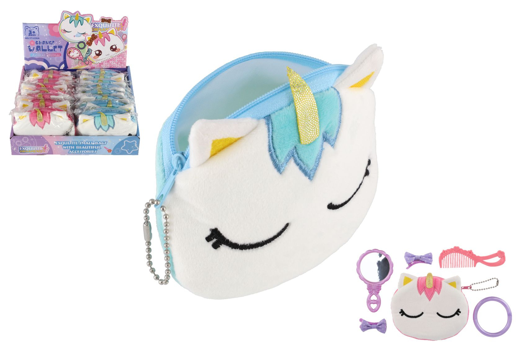 Teddies Peněženka dívčí jednorožec semiš 12x10cm s doplňky do vlasů 2 barvy