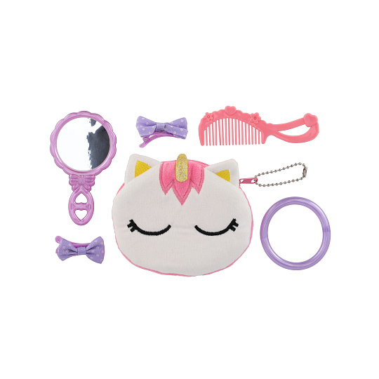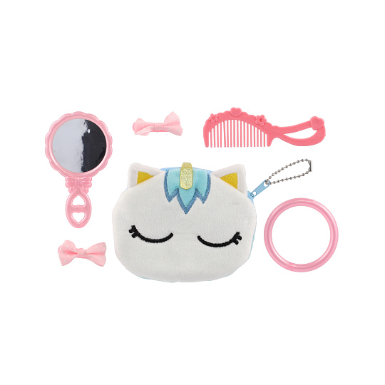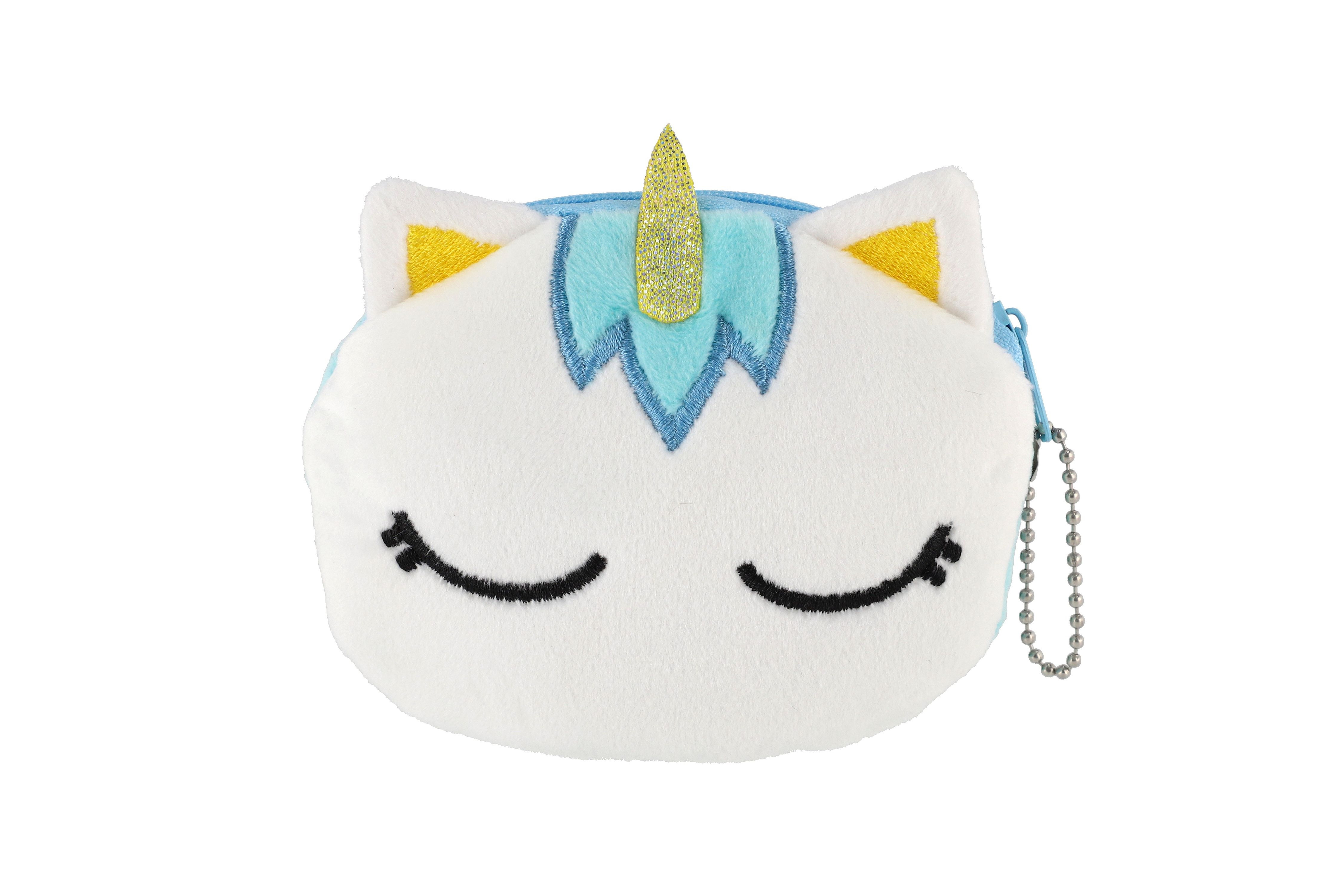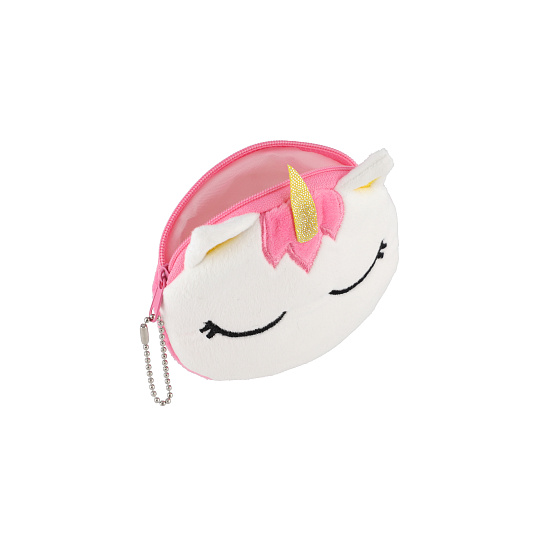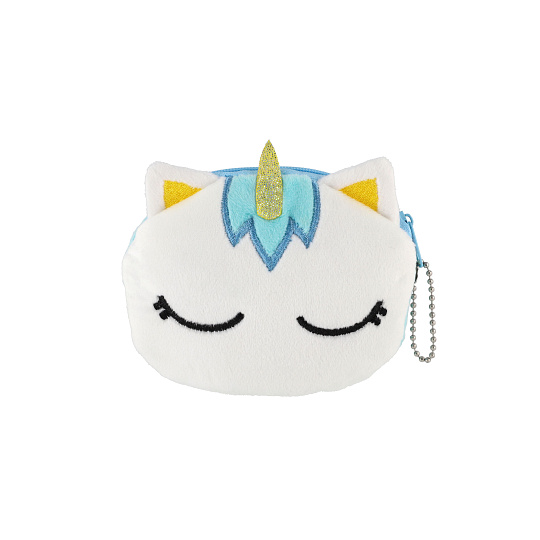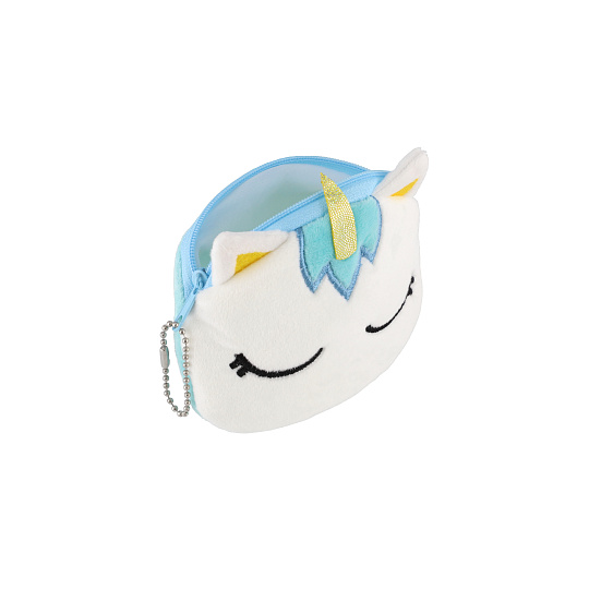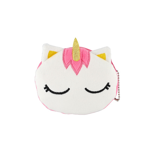 Malá šikovná peněženka se vejde do každé kabelky. Přední stranu má ozdobenou potiskem jednorožce. Zavírá se na zip. Peněženka s doplňky do vlasů. Rozměry výrobku 12 x 10 x 2 cm. Vhodné pro děti od 3 let.