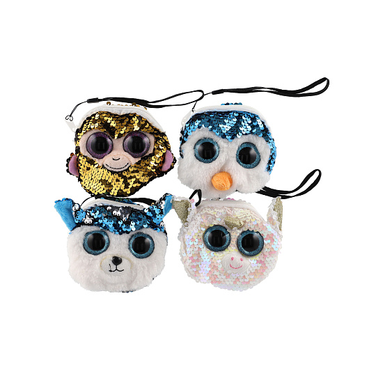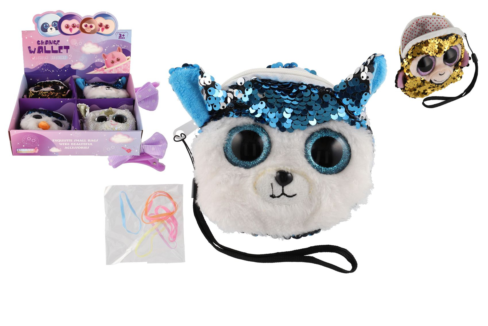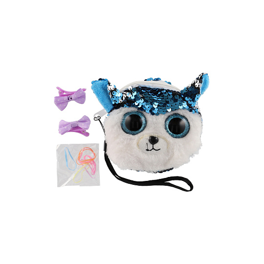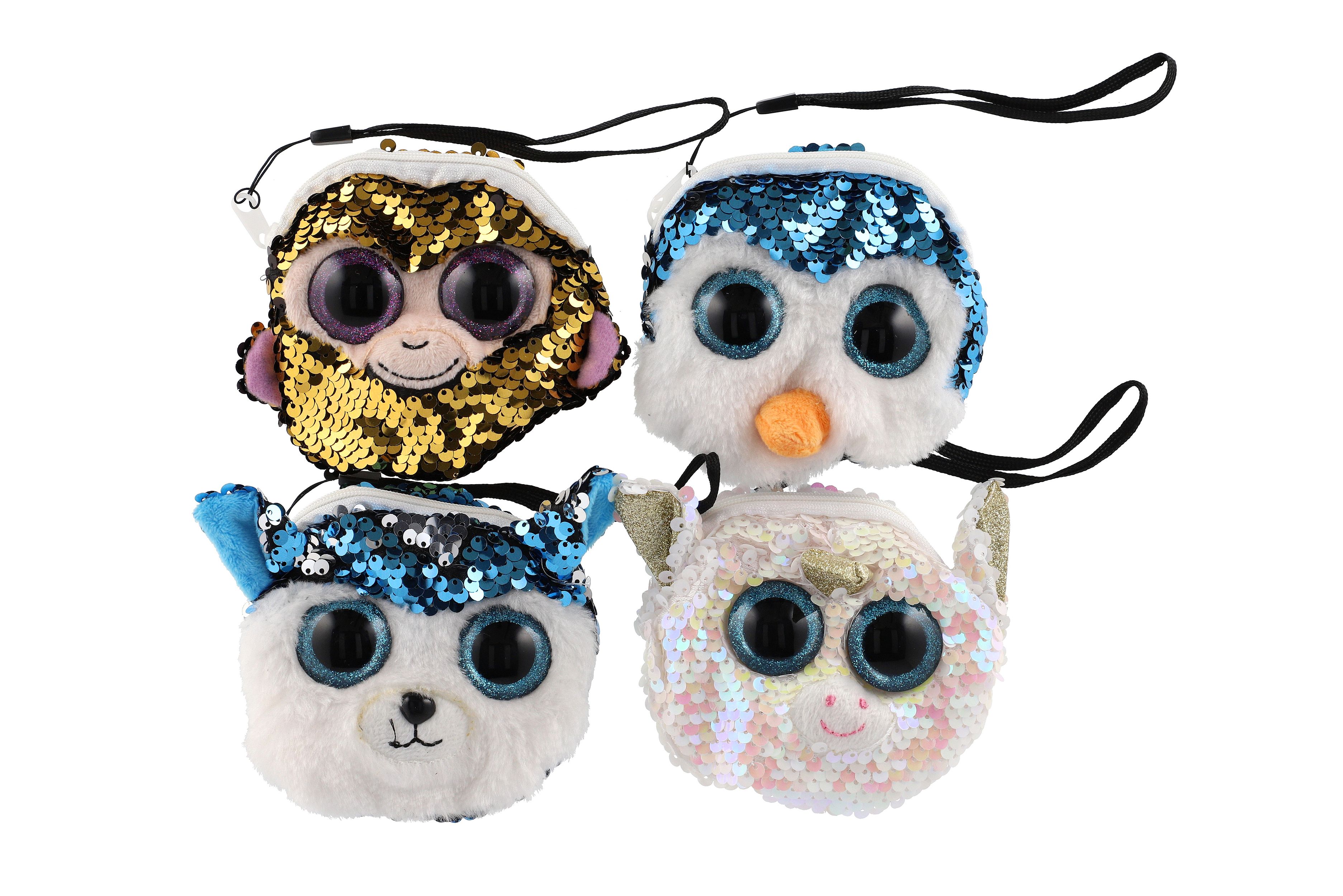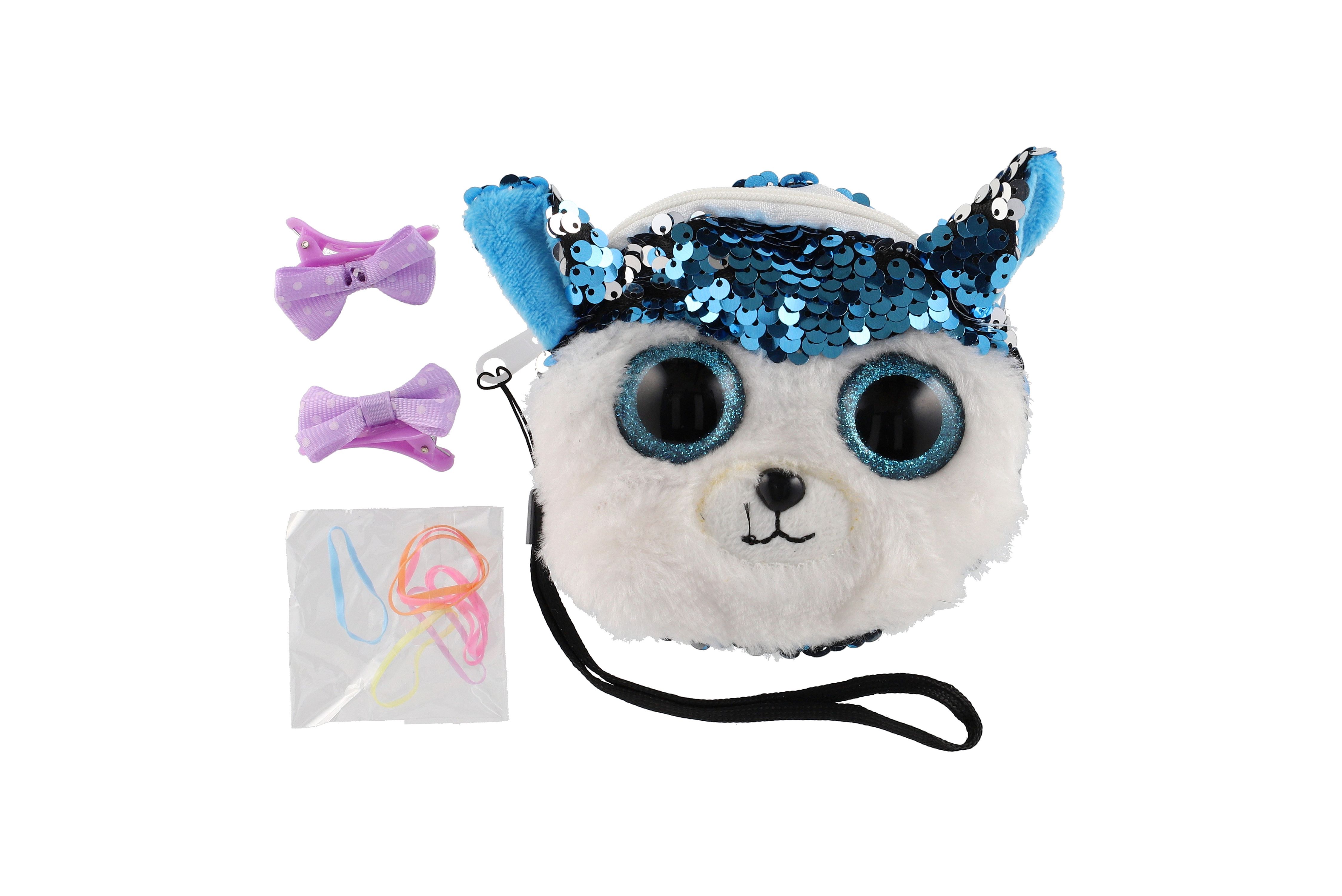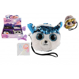 Peněženka dívčí zvířátko látková s flitry 10x10cm s doplňky do vlasů 4 druhy v sáčku 8ks v boxu