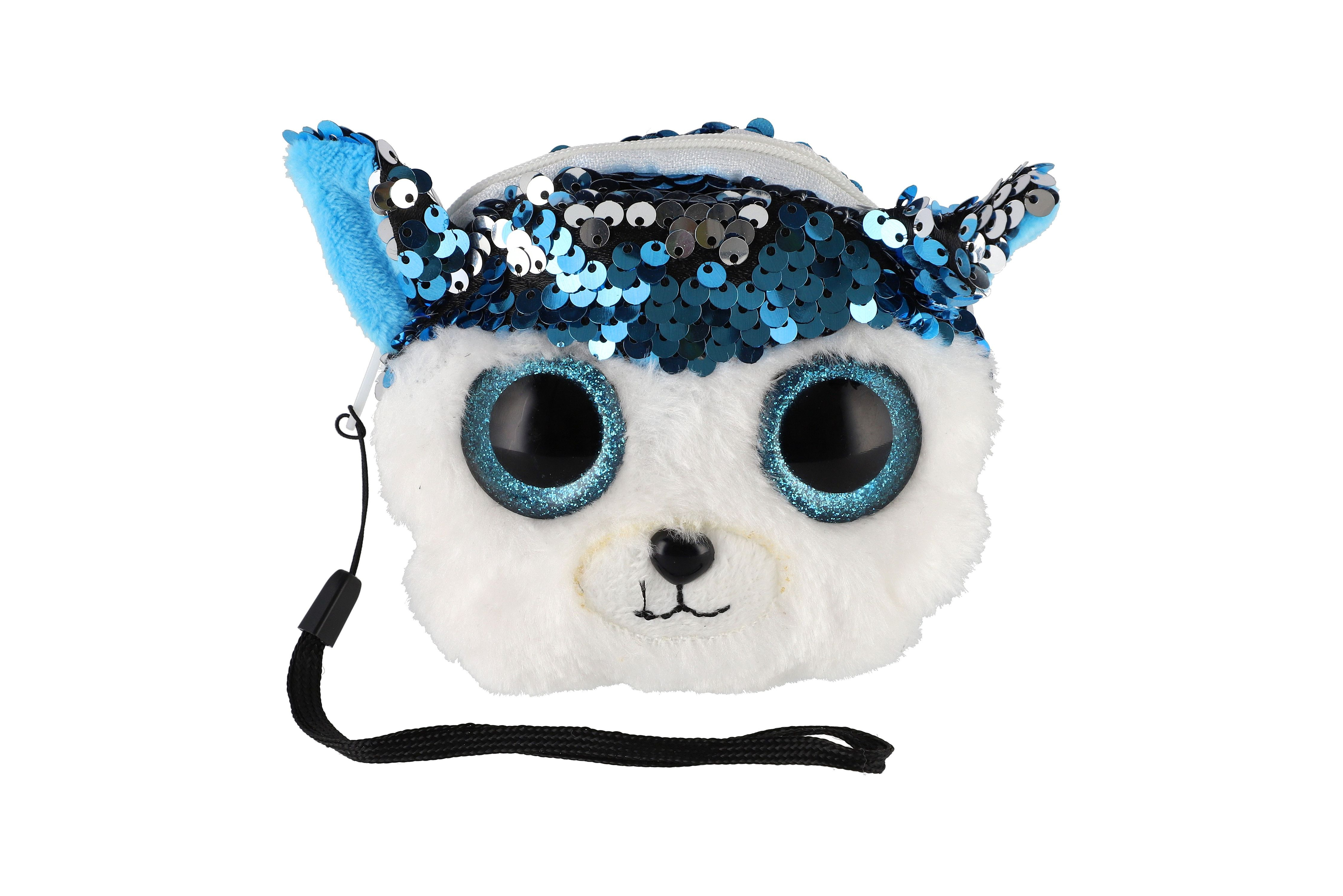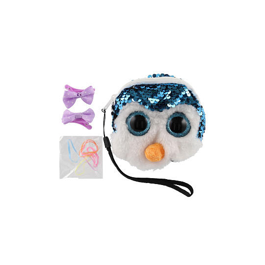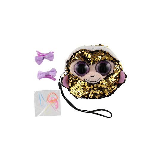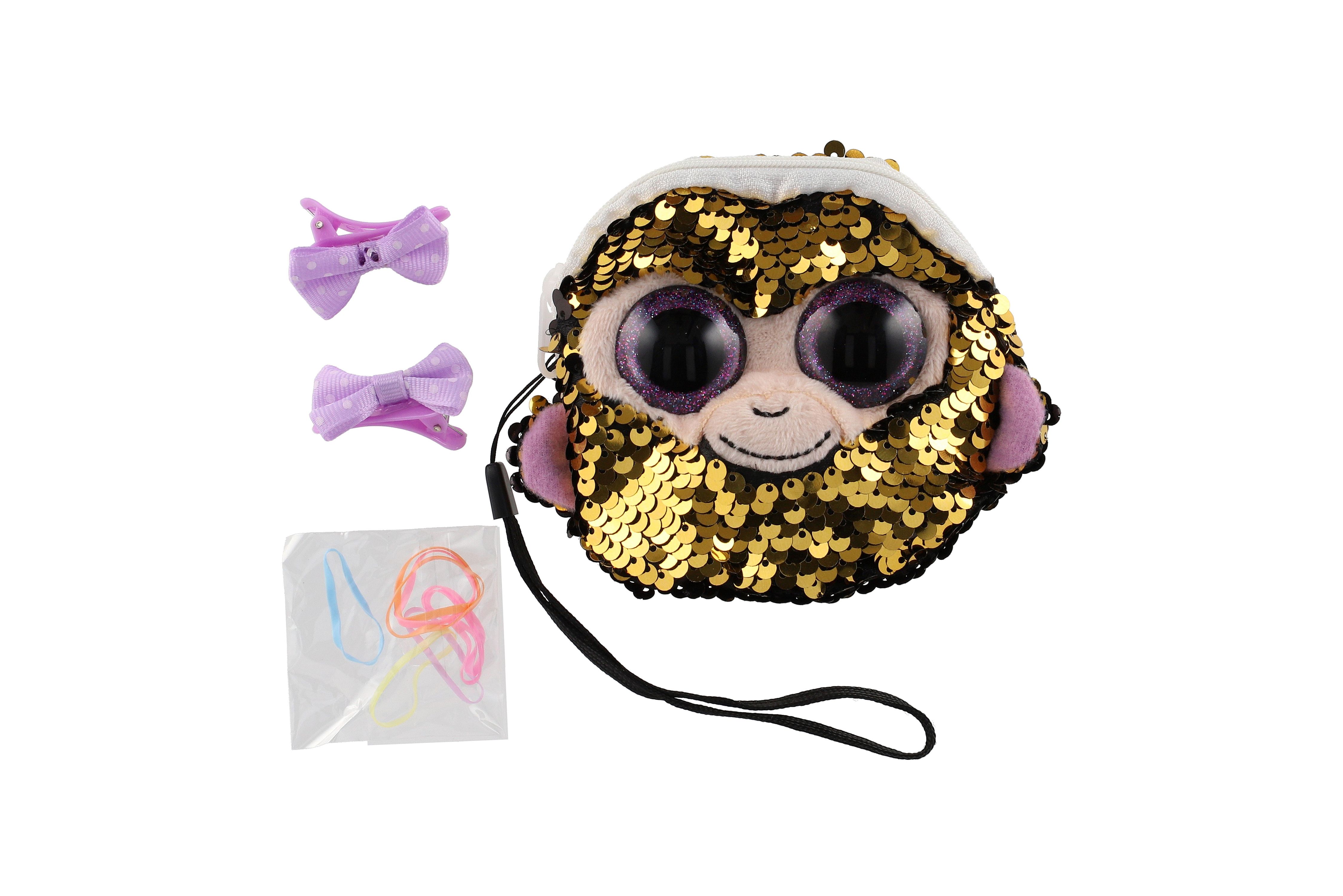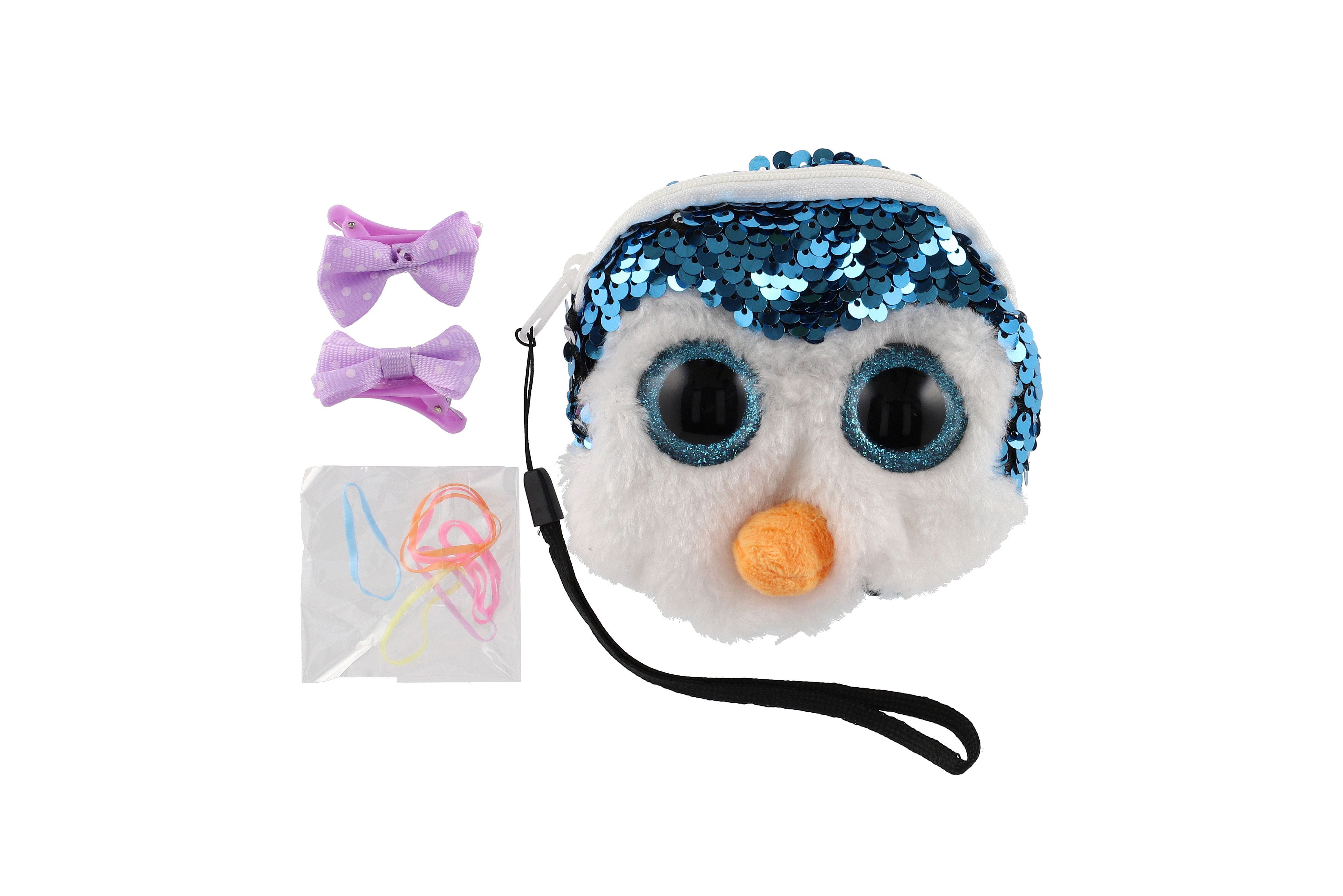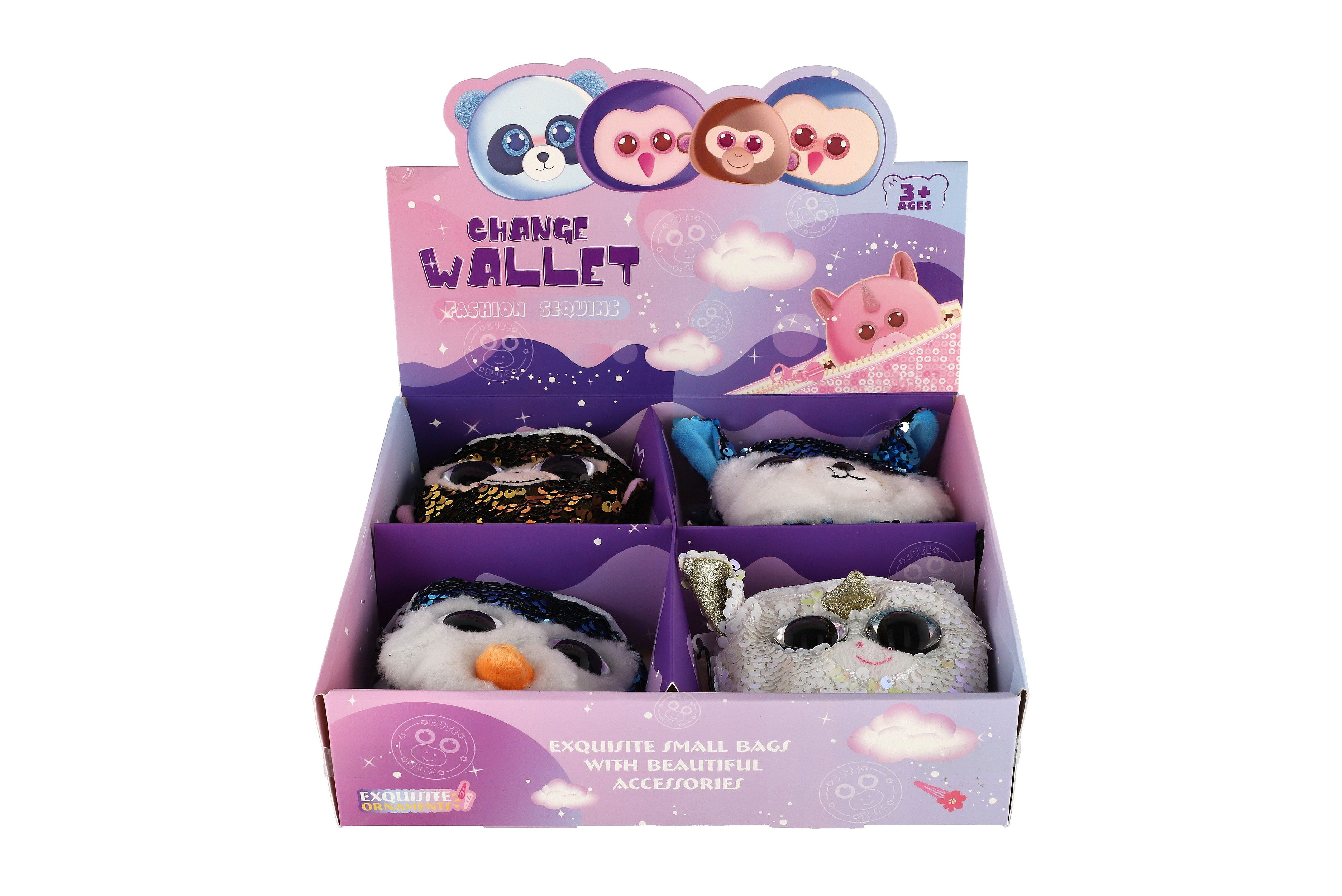 Peněženka dívčí zvířátko látková s flitry 10x10cm s doplňky do vlasů 4 druhy v sáčku 8ks v boxu