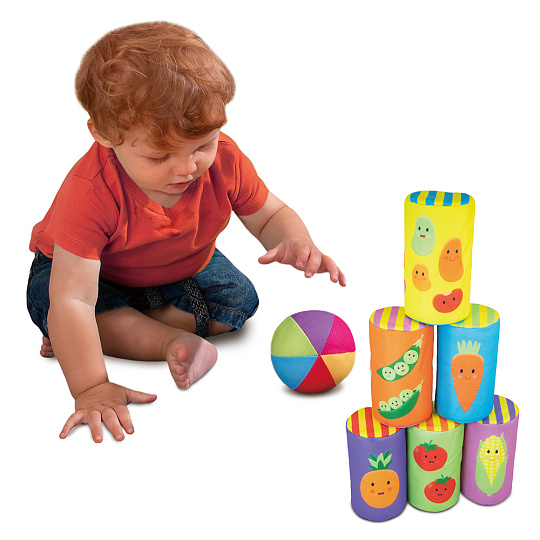 Sada 6 pěnových plechovek s rolničkami. Tyto měkké, barevné plechovky umožňují dítěti procvičit základy rovnováhy a při srážení plechovek míčkem mu zaručeně rozzáří úsměv na tváři.