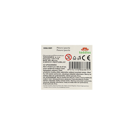 Pěnové puzzle zvířátka 3D rozvíjí senzomotorické schopnosti, myšlení, kreativitu a soustředěnost. Vybrat si můžete ze 4 druhů zvířátek. Rozměry balení 16 x 16 x 3 cm. Vhodné pro děti od 3 let.