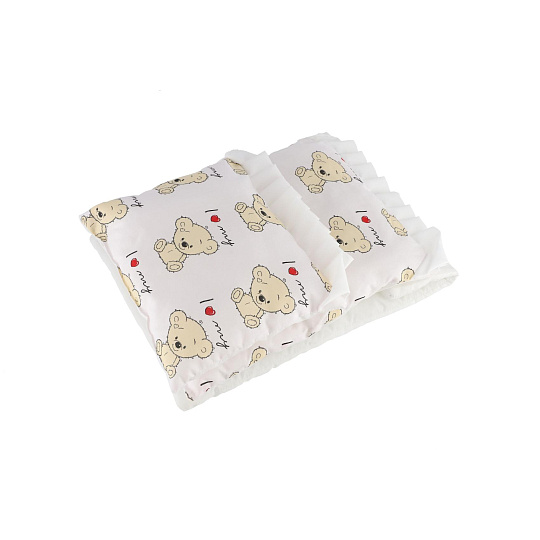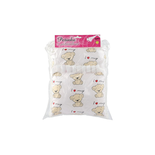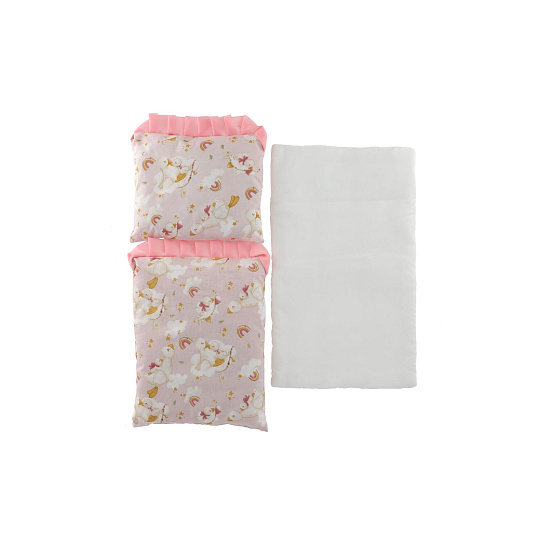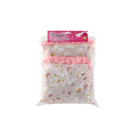 Peřinka s polštářkem pro miminko. Peřinka s polštářkem jsou vhodné do postýlky nebo do kočárku pro panenky. Rozměr 50 cm. vhodné od 3 let.