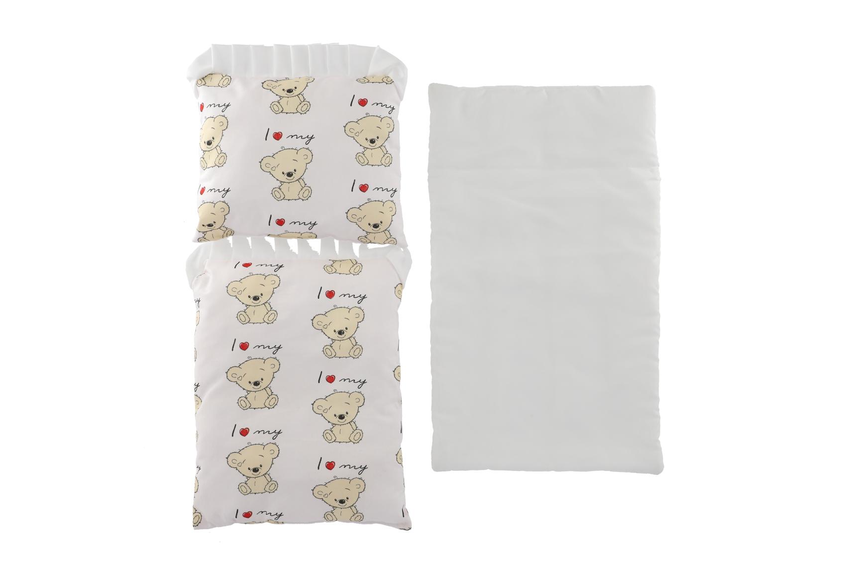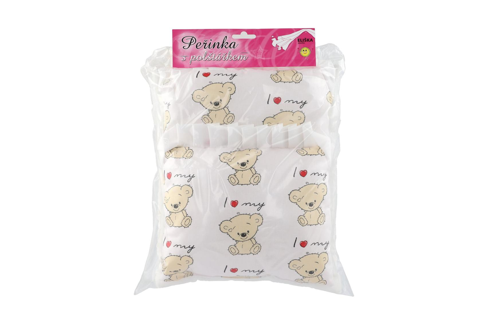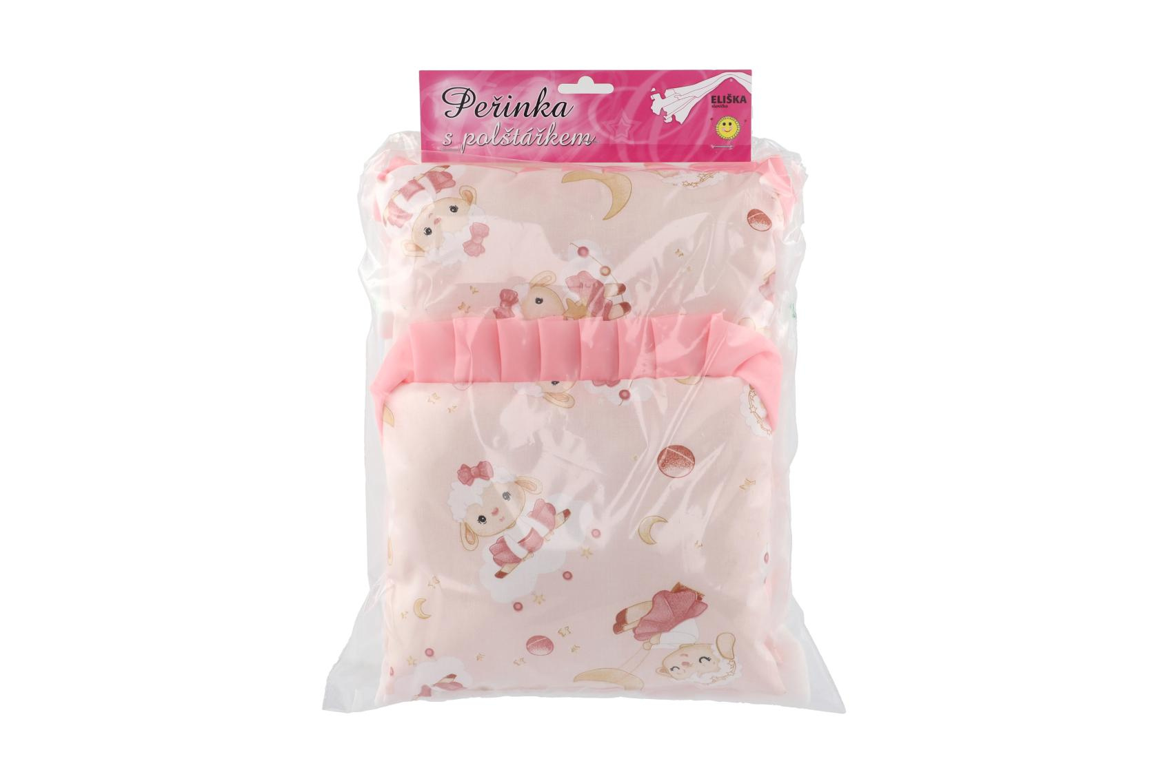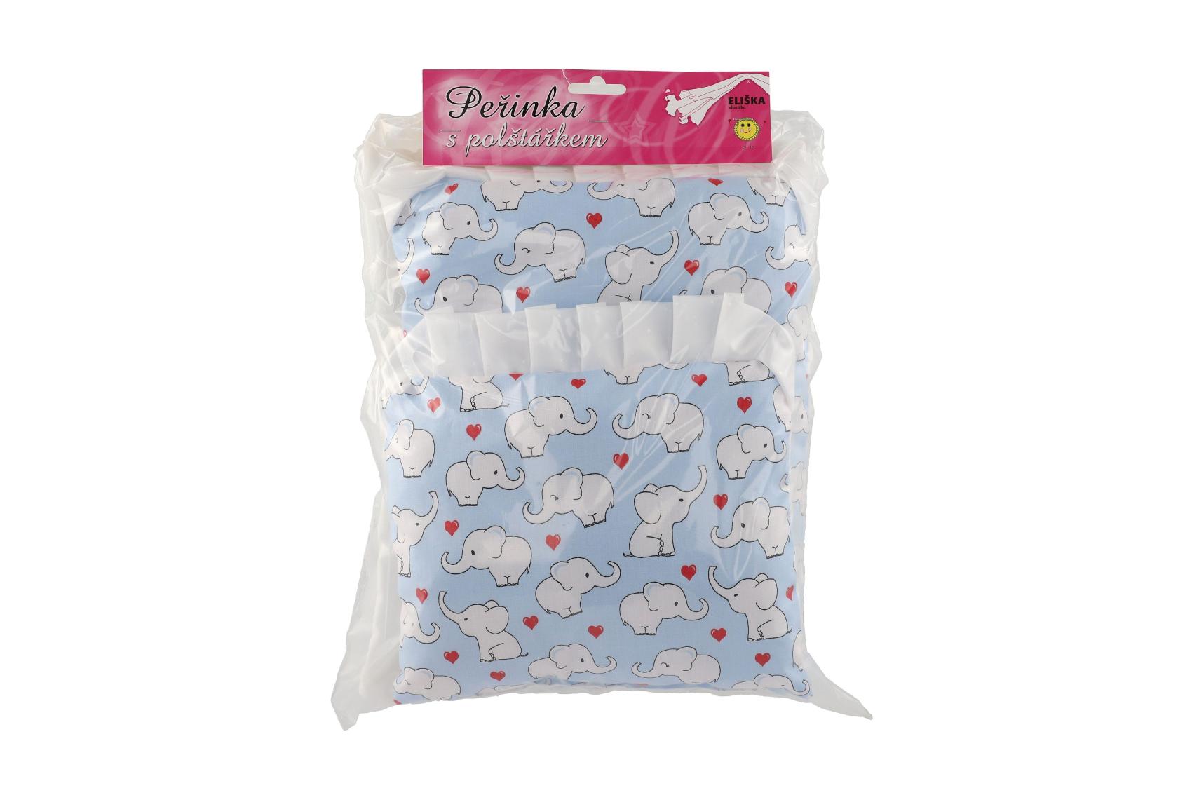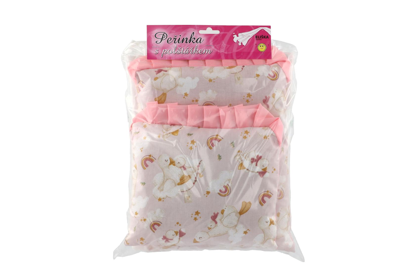 Peřinka s polštářkem pro miminko. Peřinka s polštářkem jsou vhodné do postýlky nebo do kočárku pro panenky. Rozměr 50 cm. vhodné od 3 let.