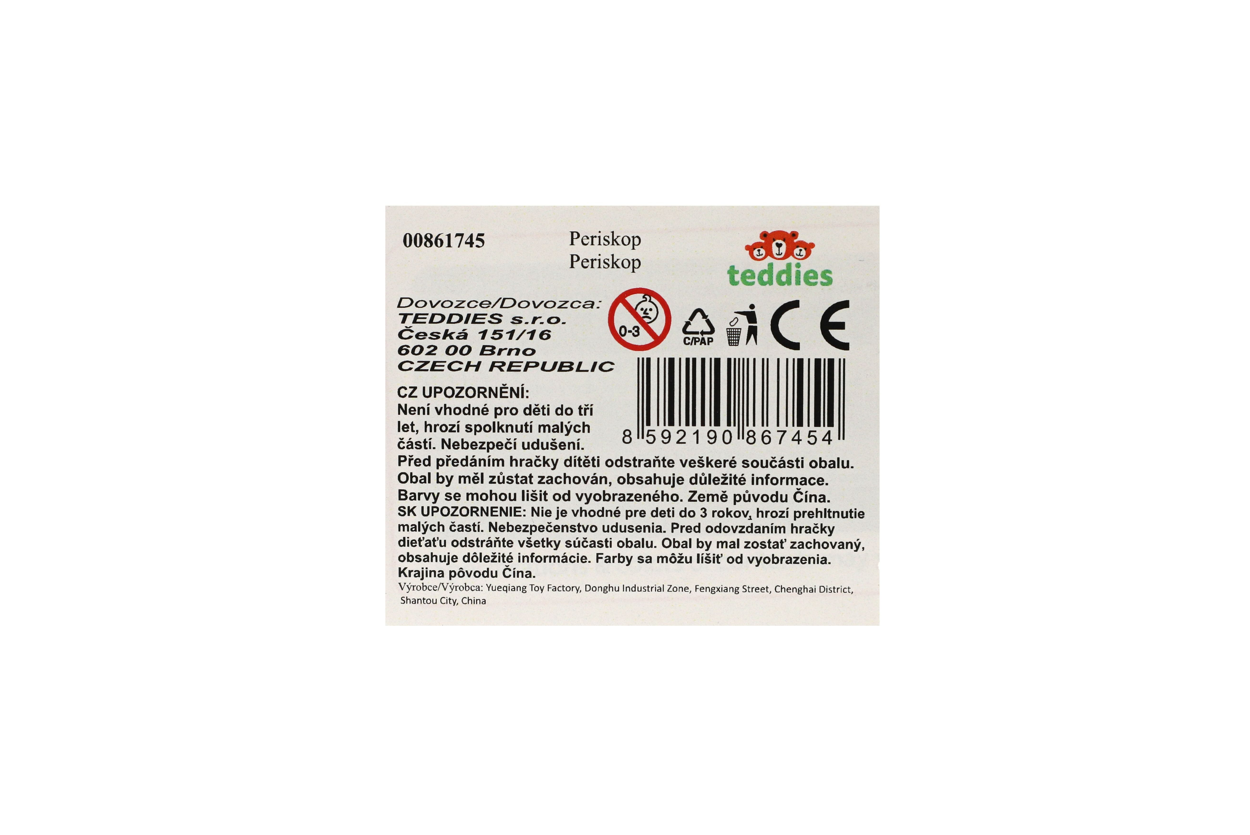 Zajímá vás, kde se co děje a rádi byste skrytě pozorovali své okolí? Periskop je báječná hračka do přírody pro všechny malé pozorovatele, umožňuje dětem nahlédnout na místa, která nejsou dobře viditelná z určité pozice. Rozměr periskopu: 31 cm Rozměr balení: 6,5 x 35,5 x 5 cm Vhodné od 3 let