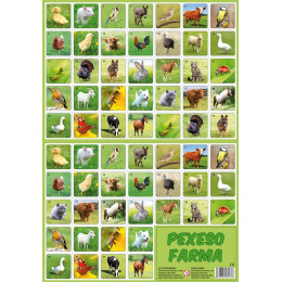 Společenská hra, při které si děti hravou formou trénují svou paměť. Hra se po rozstříhání skládá z 32 obrázkových dvojic. Pexeso 32 dvojic s obrázky zvířátek na Farmě.
