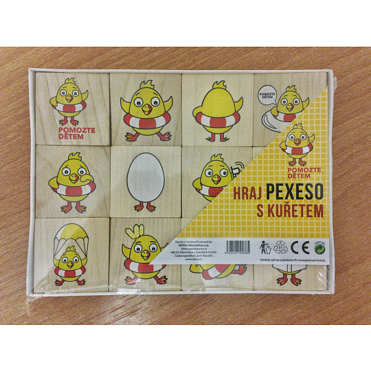 Dřevěná hra s motivem nadace "Kuře" pro trénink paměti a postřehu. Obsahuje 24 kamenů.