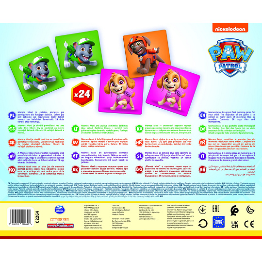Memos Maxi je skvělá paměťová hra pro všechny děti. Cílem hry je posbírat co nejvíc stejných žetonů - klasické pexeso s velkými dílky (10 x 10 cm). Balení obsahuje 24 ks s oblíbenými hrdiny ze seriálu "Tlapková patrola" Rozměr krabice: 37 x 29 x 6 cm Vhodné pro děti od 2 let