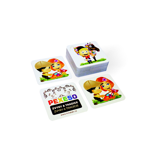 Společenská hra, při které si děti hravou formou trénují svou paměť. Hra se po rozstříhání skládá z 32 obrázkových dvojic. Pexeso 32 dvojic s obrázky koní.
