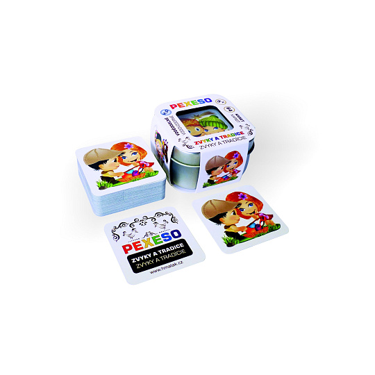 Klasická hra pro všechny věkové kategorie. Rozvíjející paměť a soustředění. Cílem hráčů je najít co nejvíce stejných dvojic. Kartičky jsou vyrobeny z kvalitního pevného kartonu, který zaručuje dlouhou životnost. Věk: 4+