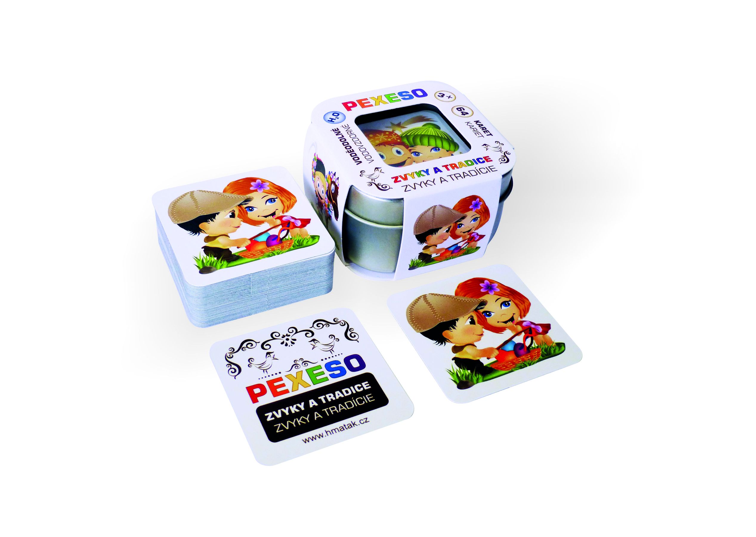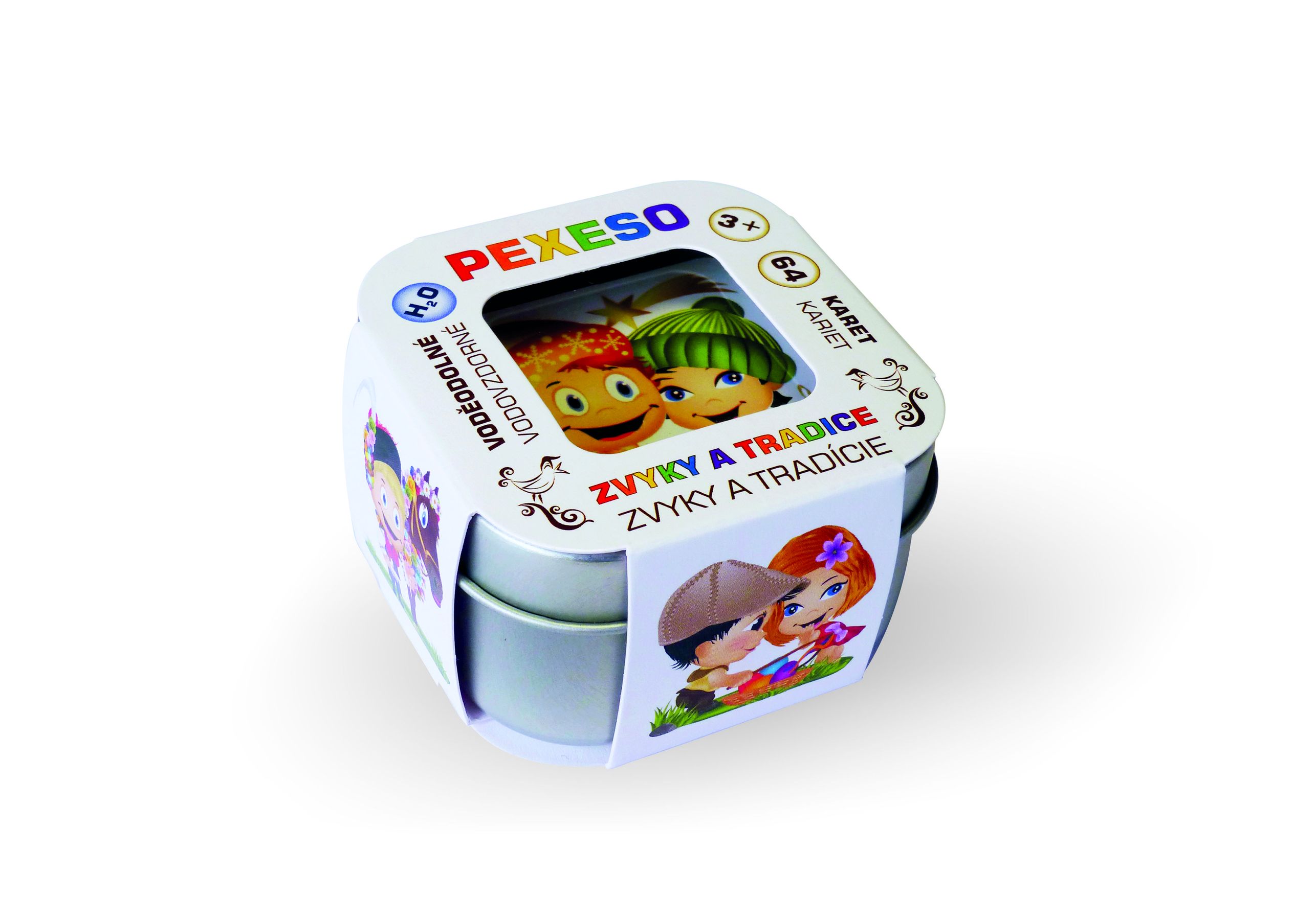 teddies Pexeso zvyky a tradice voděodolné 64 karet v plechové krabičce 6x6x4cm Hmaťák