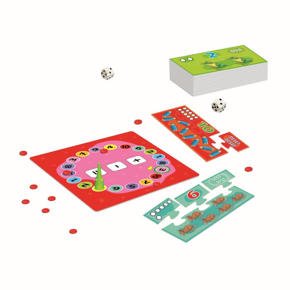 Hra „ČÍSLOHRANÍ“ je skvělá zábava, pro 1 až 4 hráče od 4 let, ale současně i velmi dobrá pomůcka při výuce dětí předškolního věku. Během hry děti poznávají čísla i způsoby jejich zapisování, rozvíjejí si postřeh, logické myšlení, paměť, manuální dovednosti, soustředění a trénují reflexy. \n\nHra obsahuje 10 sad dílků se znaky a obrázky, které se skládají ze čtyř obrázků, které mají vzájemný vztah a různým způsobem vyjadřují (ilustrují) celou řadu čísel od 1 do 10. \nDěti si mohou hrát samostatně nebo ve skupinkách. Je také dobré, když se hry účastní i dospělá osoba, která dětem ukazuje různé verze hry a pomáhá jim při řešení obtížnějších úkolů. \nU některých her můžete upravit tak, aby odpovídala schopnostem zúčastněných dětí.\n\nHra obsahuje: Sady dílků se znaky a obrázky - 40 ks, barevnou hrací desku - 1 ks, žetony - 40 ks, figurku -1 ks, hrací kostky - 2 ks, český a slovenský návod ke hře.