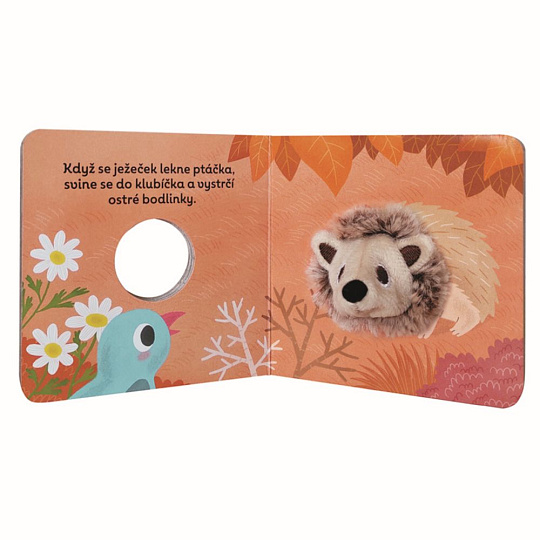 Pomocí maňáska oživíte příběh ježečka, který poprvé poznává svůj rodný les a jeho obyvatele. Šustí v lesním porostu a hlasitě přitom funí. Když ho vyleká ptáček, svine se do pichlavého klubíčka a večer se přivine v pelíšku k mamince.