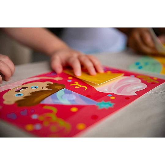 Naučná skládačka pro děti od 12 měsíců.\n6 pružných plastových destiček se suchým zipem a 12 velkých samostatných dílků, které umístíte na destičky pomocí suchého zipu. Poznáte jaký je tvar draka, zmrzliny nebo slunce?\n\nNaučná skládačka pro děti od 12 měsíců.\nDěti hledají dílky, které mají stejný tvar jako je předlohy na destičce. Poznáte jaký je tvar draka, zmrzliny nebo slunce?\n\nCO JE UVNITŘ?\nSada obsahuje 6 pružných plastových destiček se suchým zipem a 12 vetších samostatných dílků, které umístíte na destičky pomocí suchého zipu. Díky této vychytávce jednotlivé díly jen tak nespadnou a budou držet na správném místě. Všechny části jsou vyrobené z odolného, ale tenkého plastu se speciální povrchovou úpravou, která je dětem příjemná na dotek.\n\nJAK HRÁT?\nBerte jednotlivé dílky jeden po druhém a povídejte dětem co na nich je.\nPotom vezměte destičku s obrysy předmětů a vybídněte dítě, aby našlo správný předmět pro každý obrys a připevnilo ho pomocí suchého zipu na správné místo.\nZjistěte více o různorodých tvarech, naučte se je rozlišovat , poznávejte barvy, procvičte slovní zásobu společně s jemnou motorikou a koordinaci ruka-oko.\n\nBENEFITY:\n- zlepšuje motorické schopnosti\n- trénuje vyjadřování a mluvenou řeč\n- cvičí paměť a postřeh\n- upevňuje udržení pozornosti\n\nZjistěte více o různorodých tvarech a naučte se je rozlišovat. Poznávejte barvy, procvičte slovní zásobu společně s jemnou motorikou a koordinaci ruka-oko.