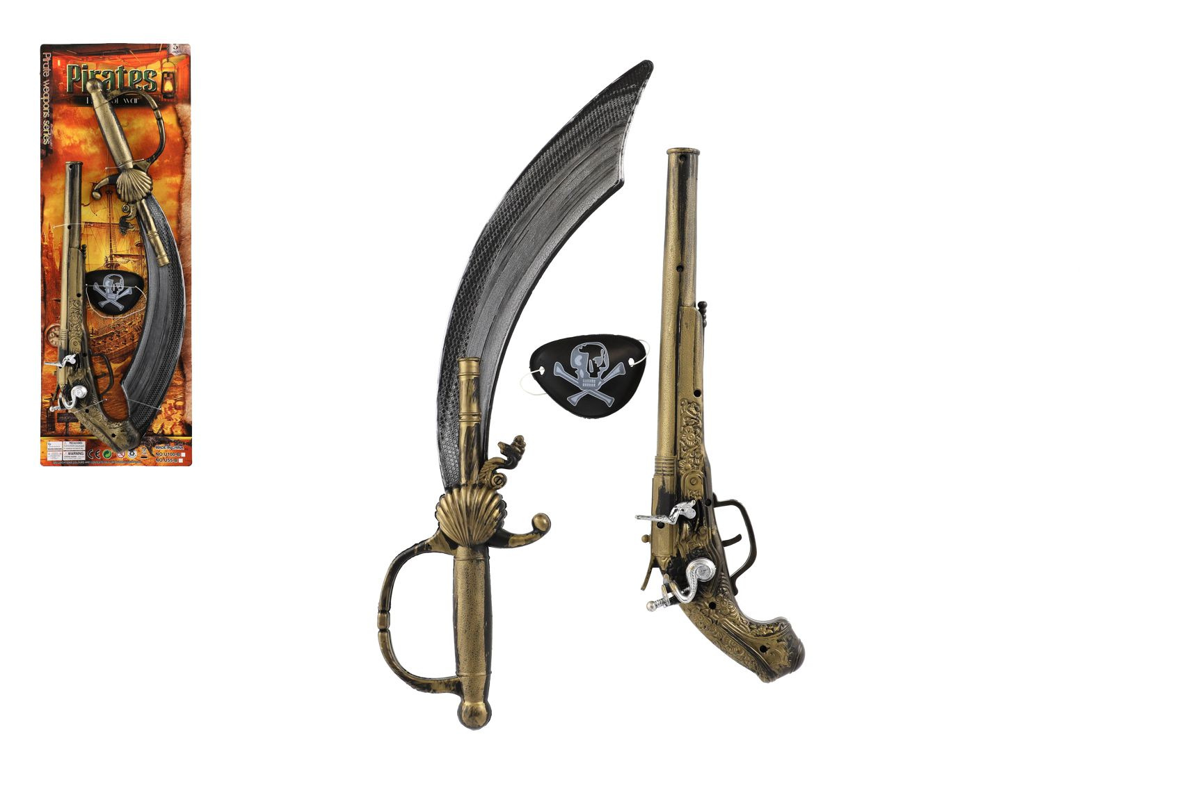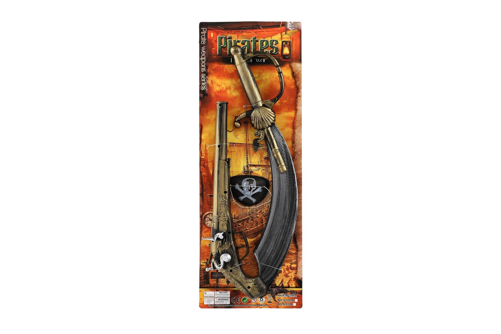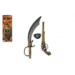 Teddies Pirátská sada plast meč/šavle, pistole klapací, kryt na oko na kartě 19x53cm
