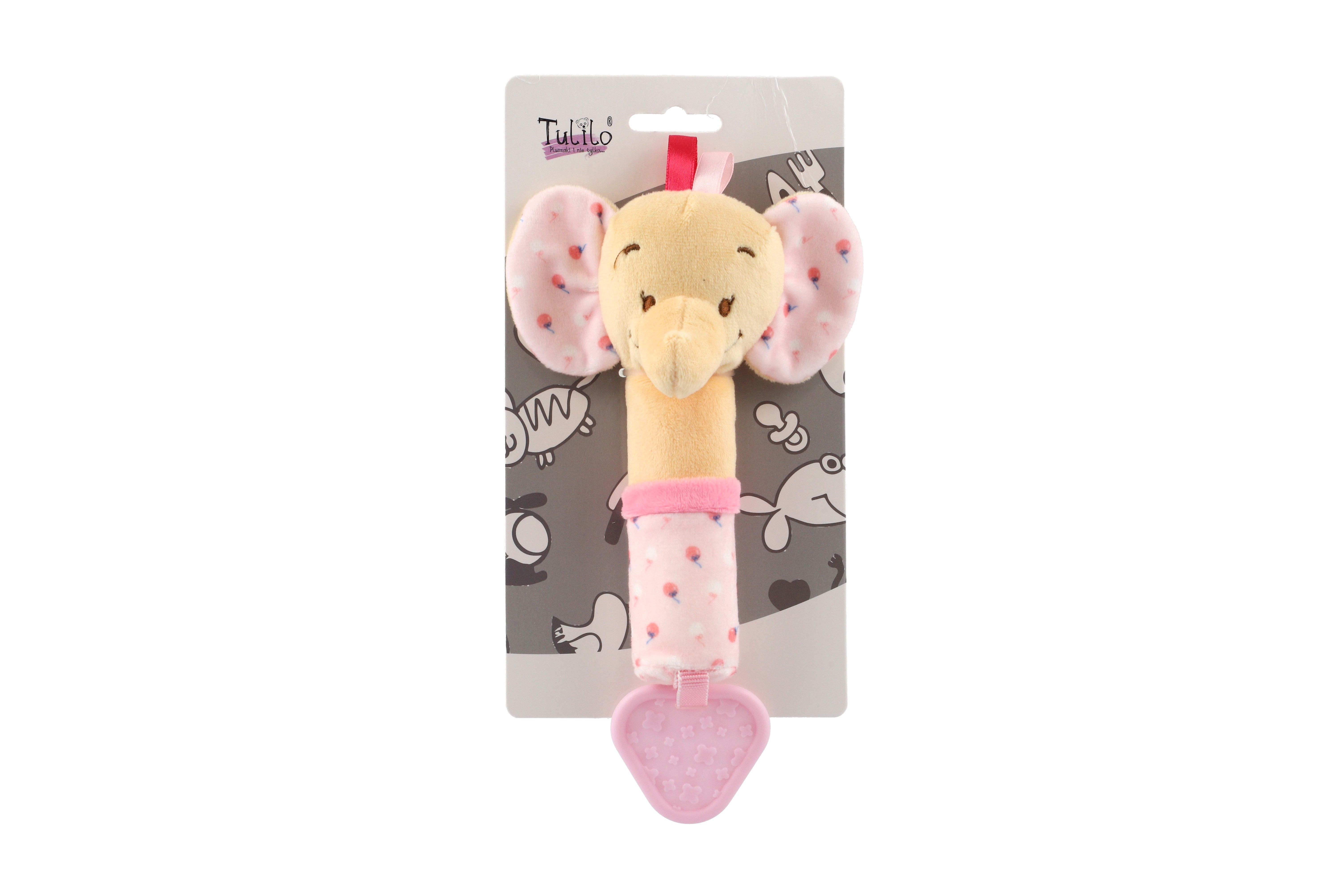 Plyšové pískátko a kousátko ve tvaru roztomilého slona je skvělou hračkou pro nejmenší. Měkký materiál je příjemný na dotek, zatímco kousátko poskytuje úlevu při prořezávání zoubků. Vestavěné pískátko upoutá pozornost a podporuje smyslový vývoj. Rozměr: 22 cm Vhodné pro děti od narození