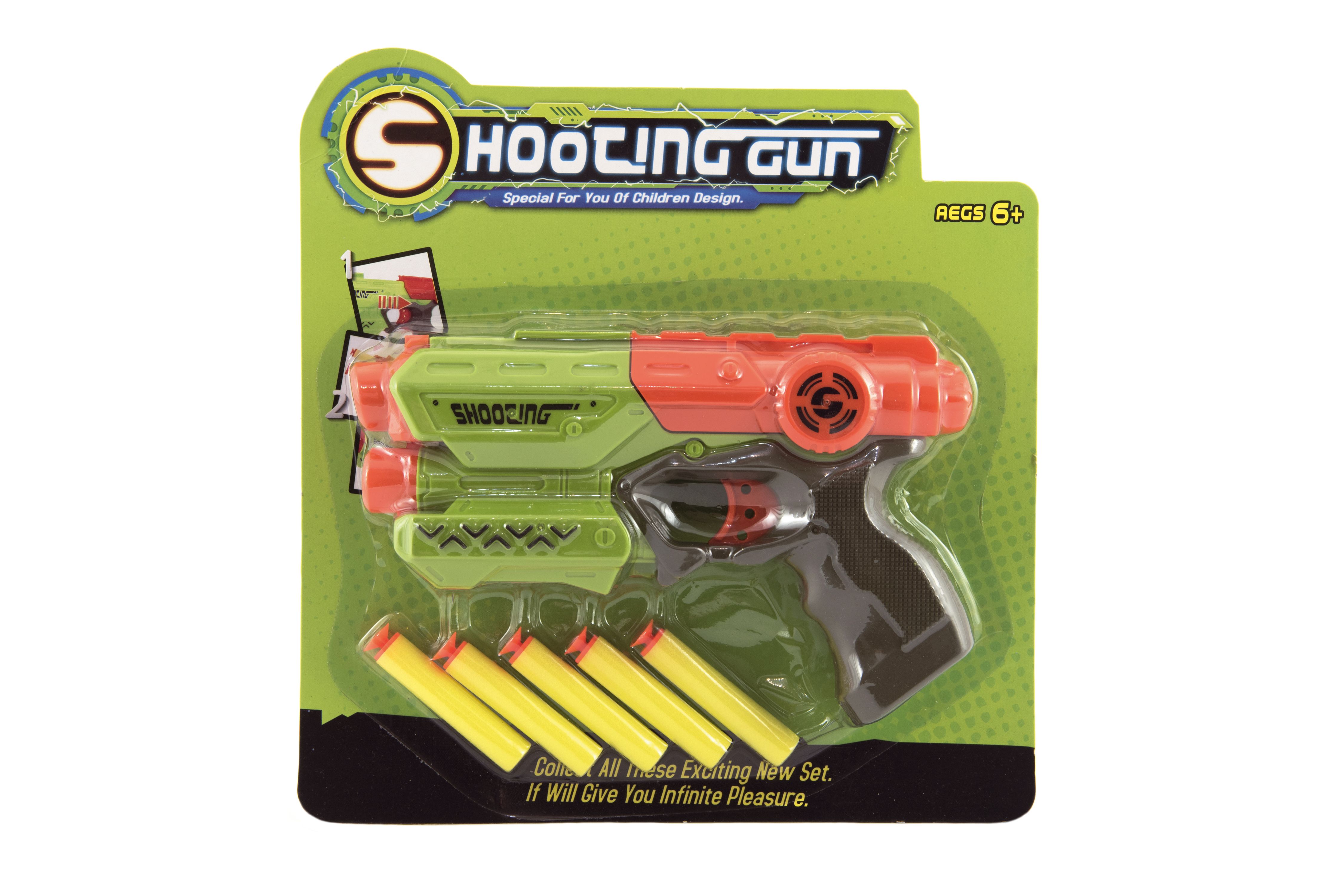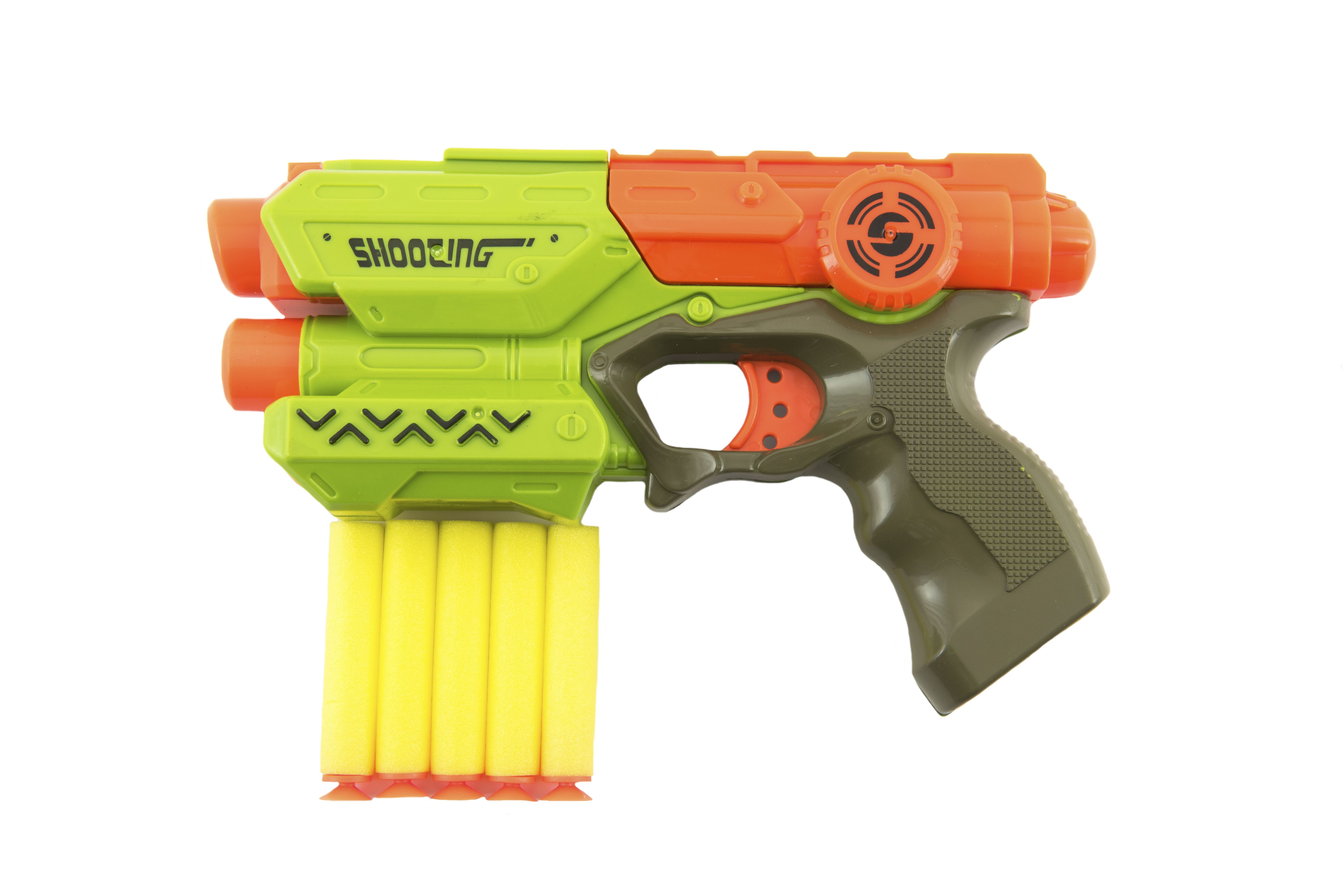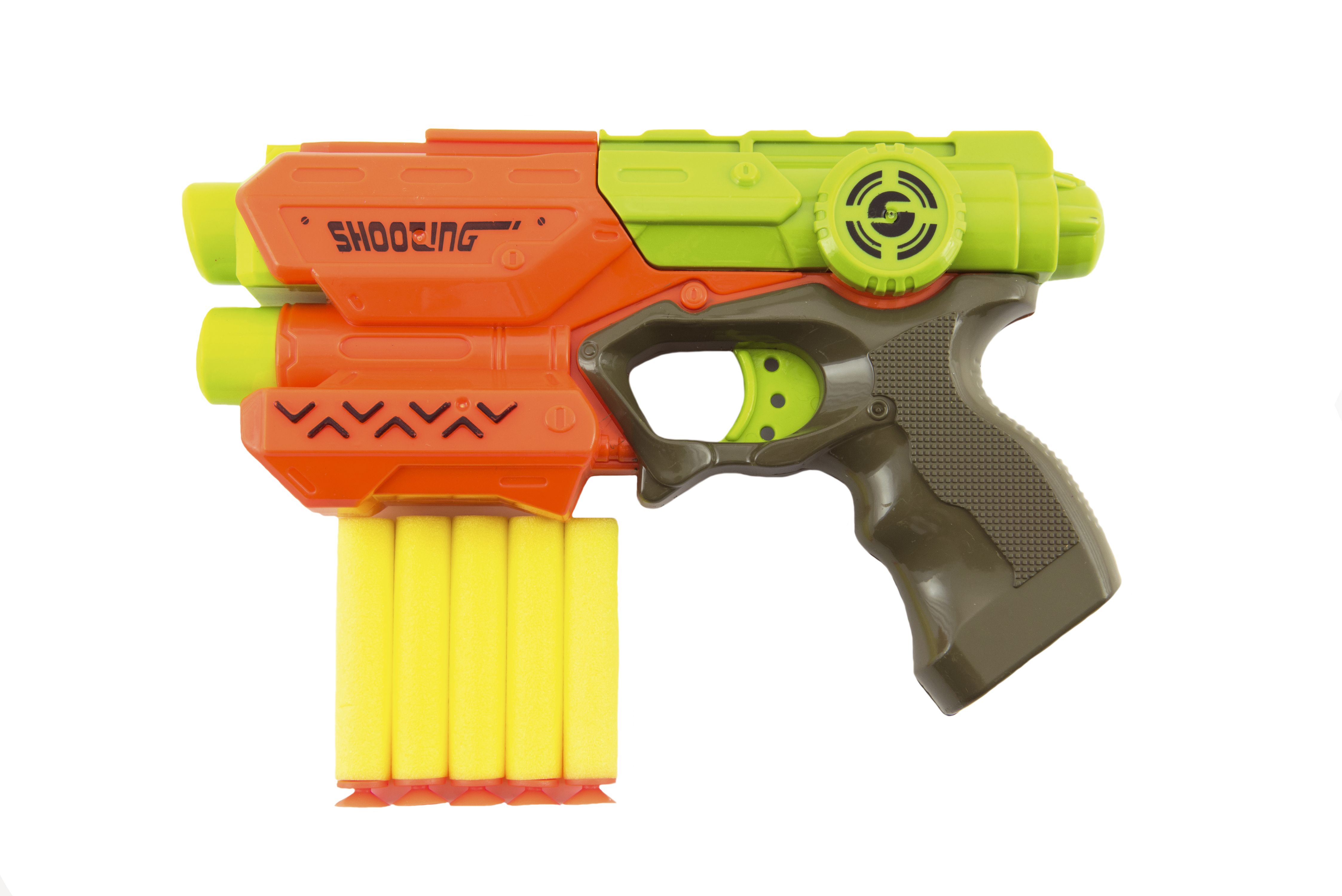 Pistole 21cm na pěnové náboje 5ks plast 2 barvy na kartě