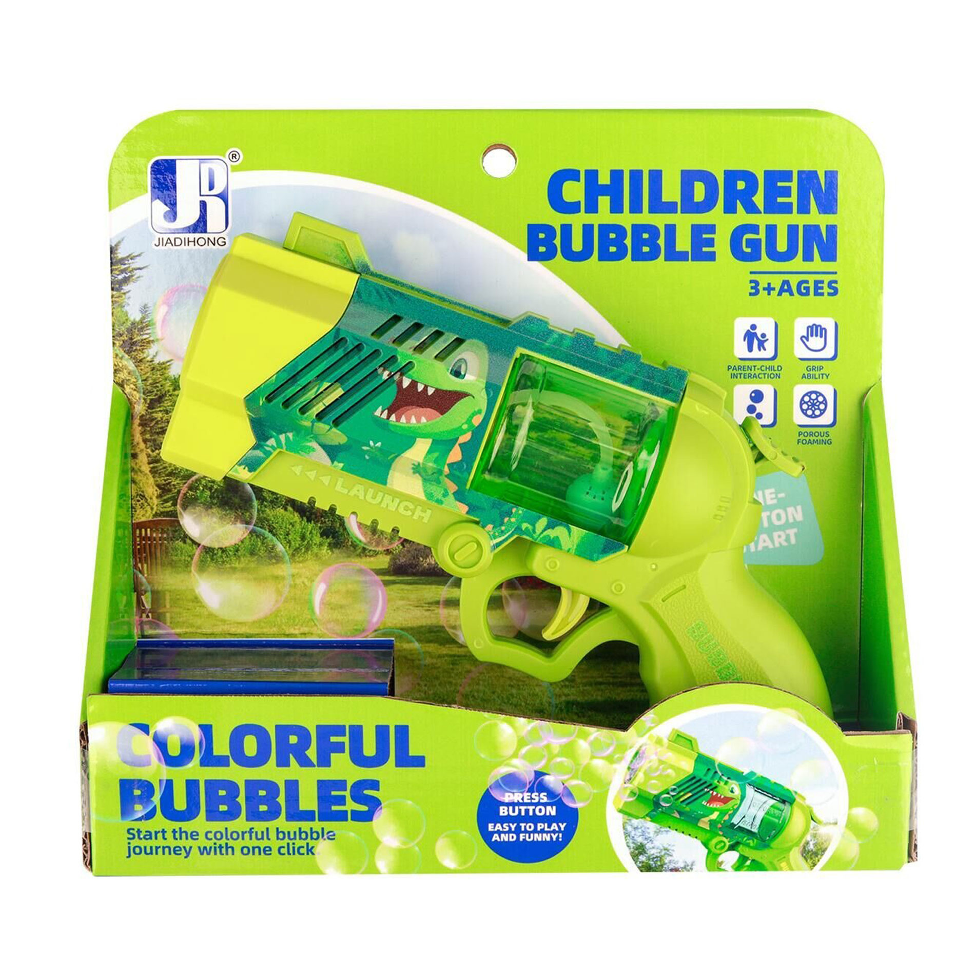 Užijte si tisíce bublinek vystřelujících z této senzační pistole. Ideální pro hru venku nebo v interiéru. Pistole funguje na 4 ks baterí typu AA, které nejsou součástí balení. Do zásobníku v pistoli nalejte náplň s bublifukem a zábava může začít! Náplň není součástí. Při zmáčknutí spouště se začnou vypuštět bubliny spolu se světelným efektem.