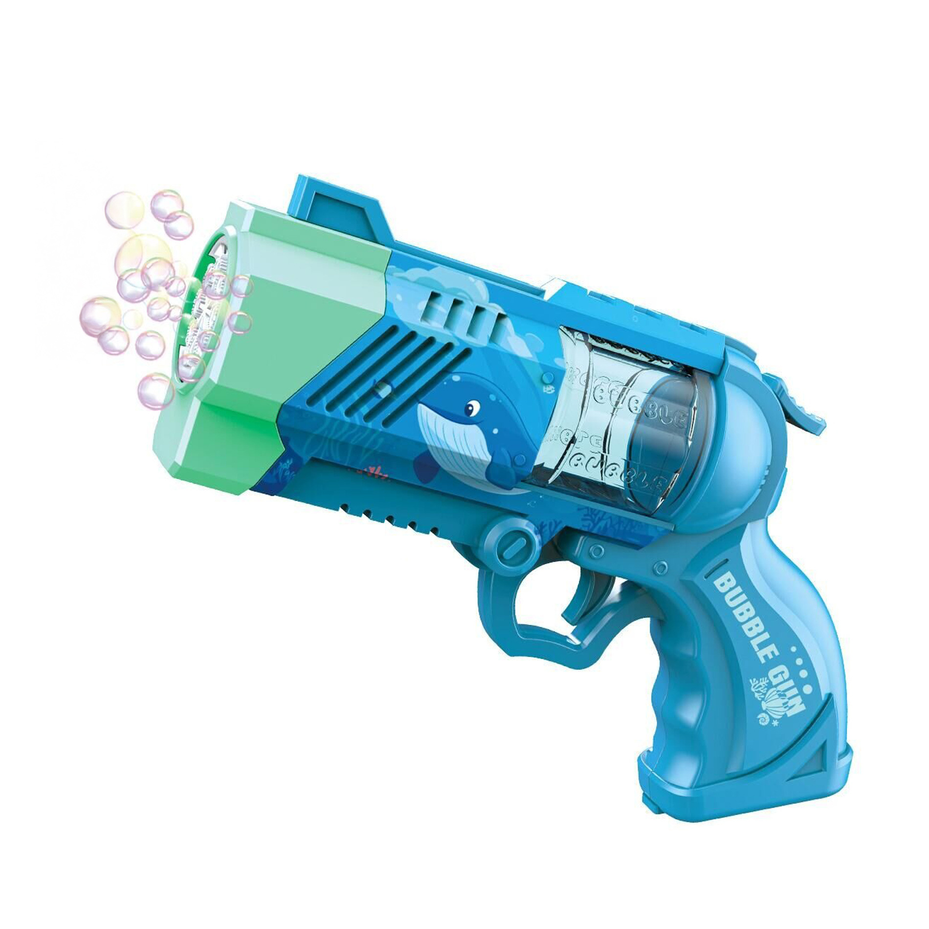 Užijte si tisíce bublinek vystřelujících z této senzační pistole. Ideální pro hru venku nebo v interiéru. Pistole funguje na 4 ks baterí typu AA, které nejsou součástí balení. Do zásobníku v pistoli nalejte náplň s bublifukem a zábava může začít! Náplň není součástí. Při zmáčknutí spouště se začnou vypuštět bubliny spolu se světelným efektem.