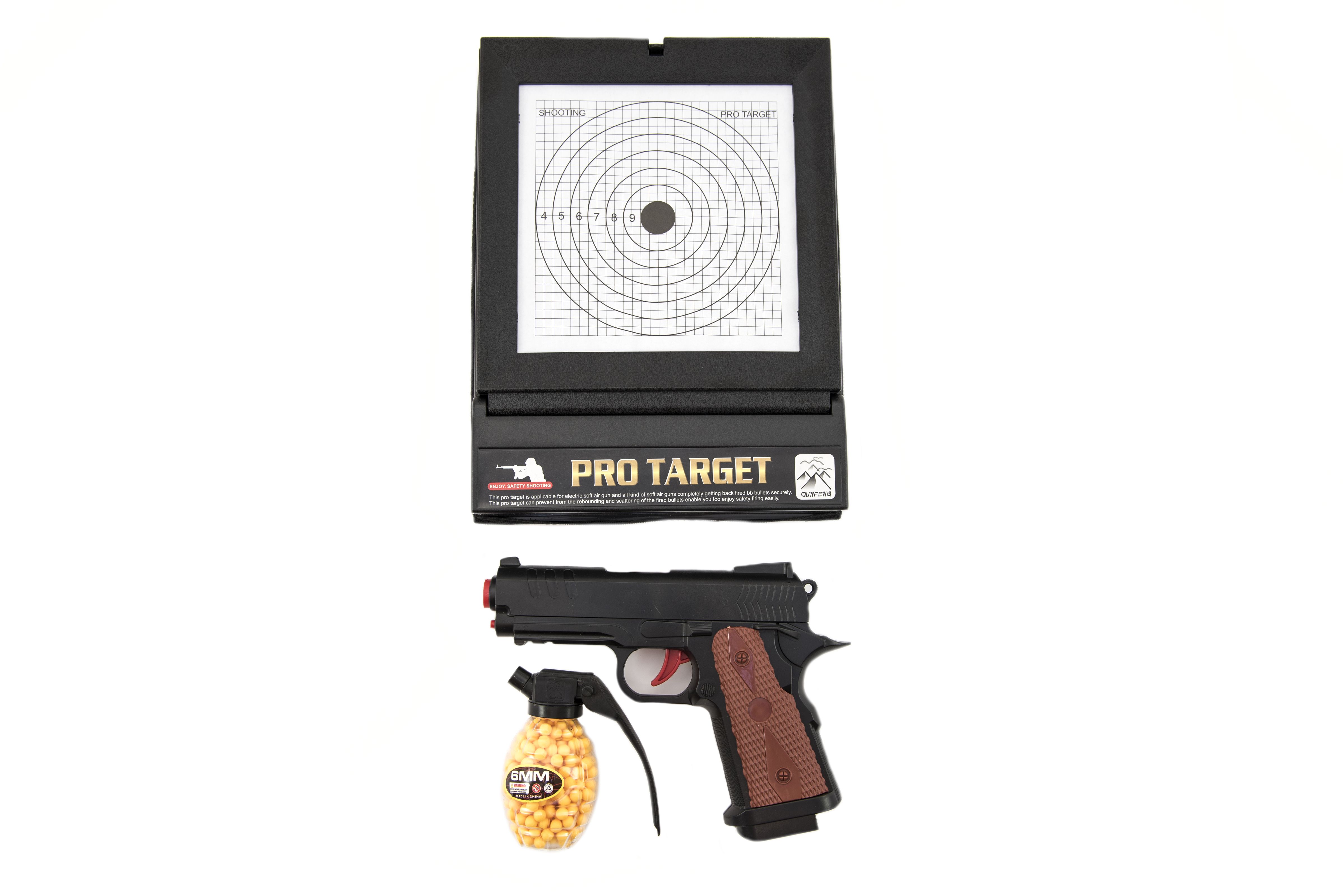 Pistole plast na kuličky 6mm s terčem v krabici 45x29x5cm