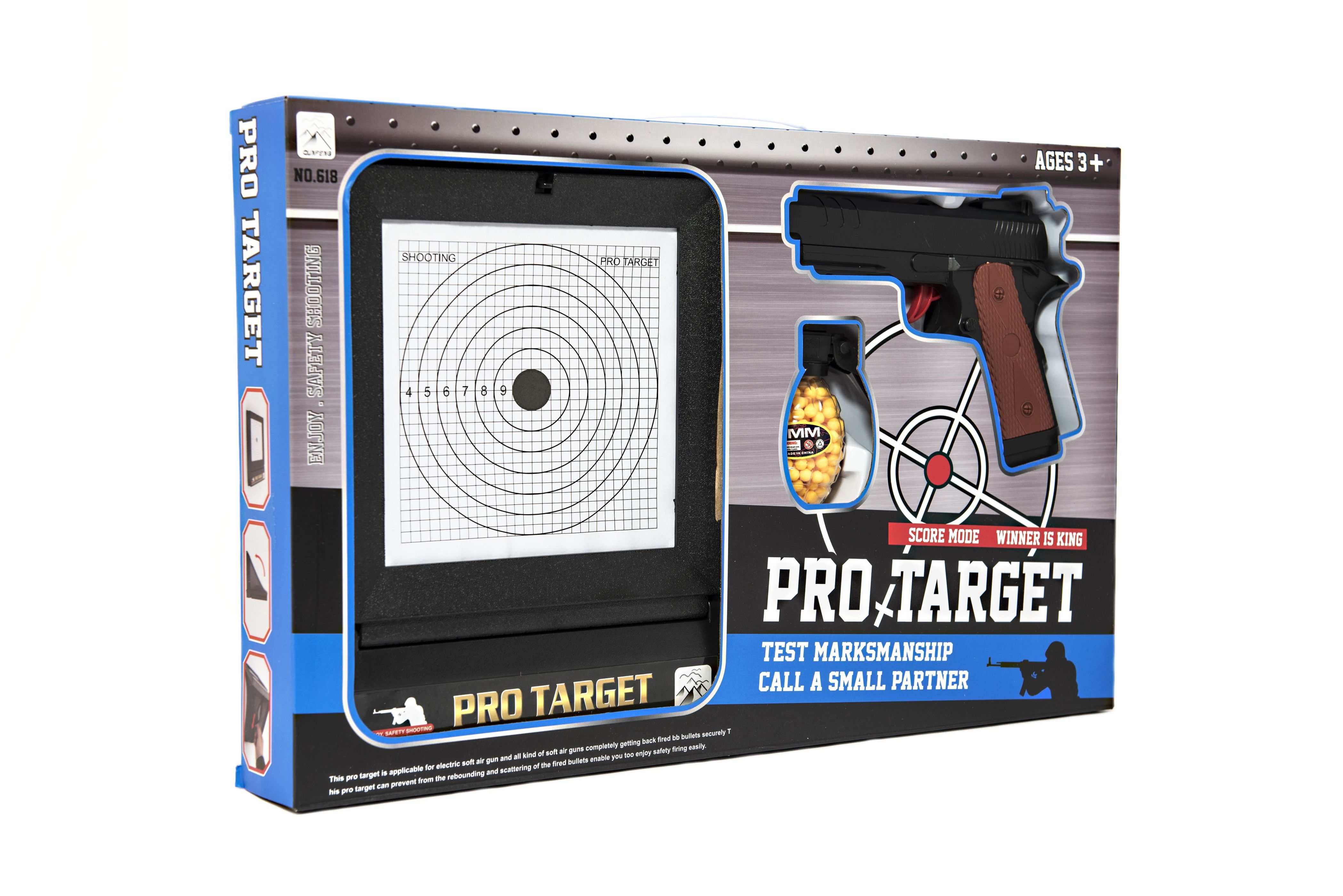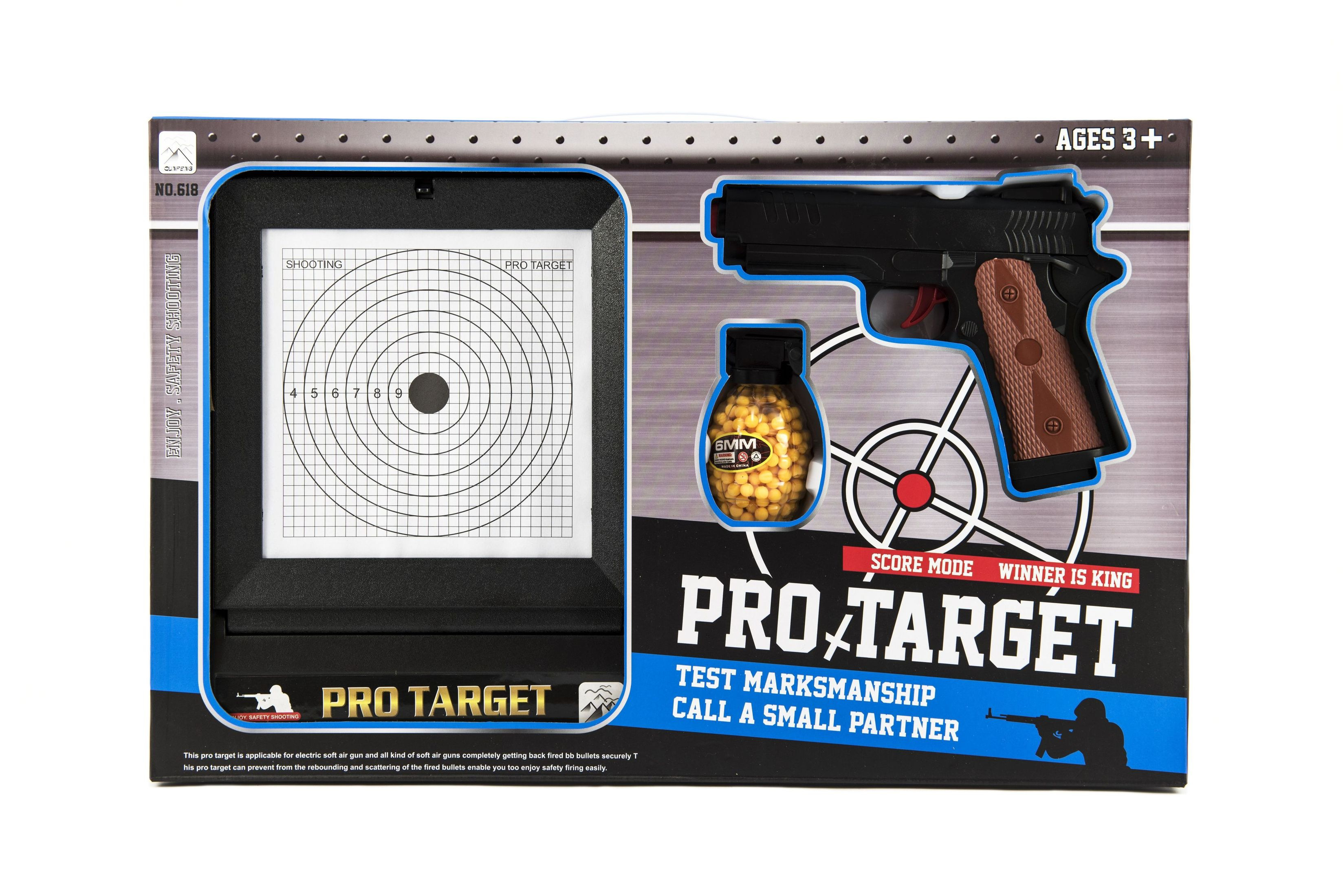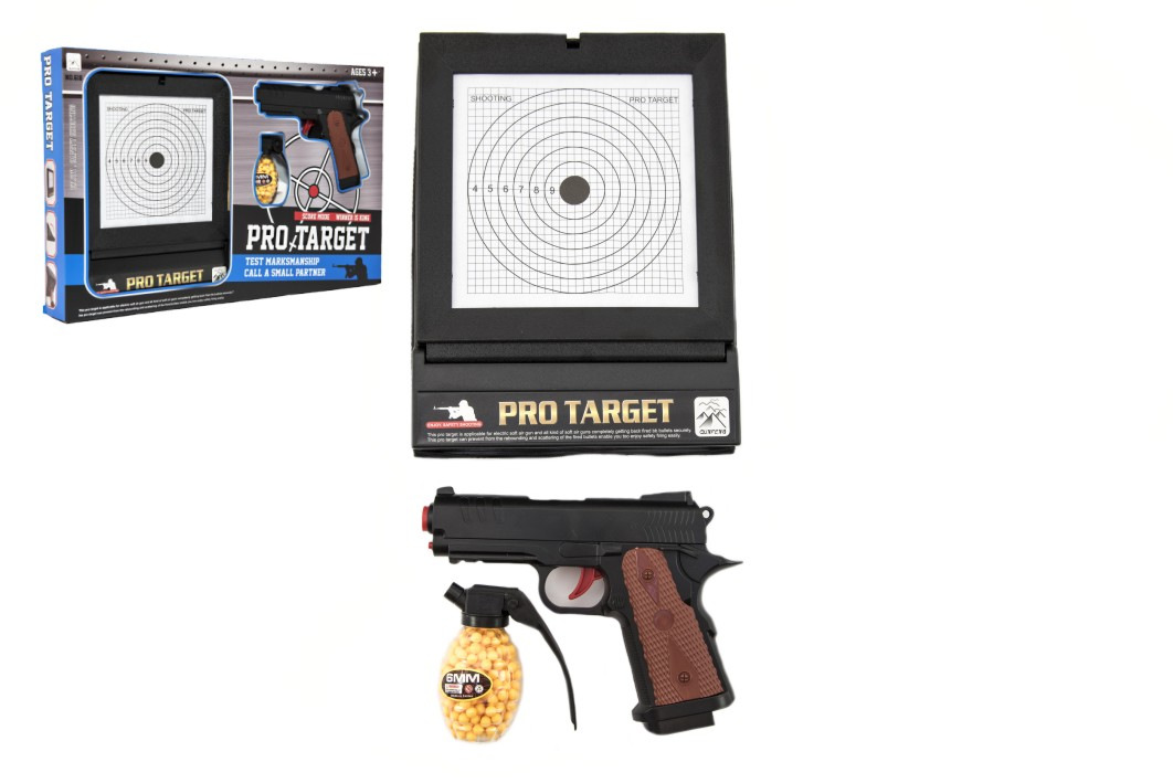 Kuličková pistole pro všechny, kteří si rádi hrají na vojáky, zloděje a policisty. Součástí je terč na trénování přesnosti střelby. Vhodné od 3 let.