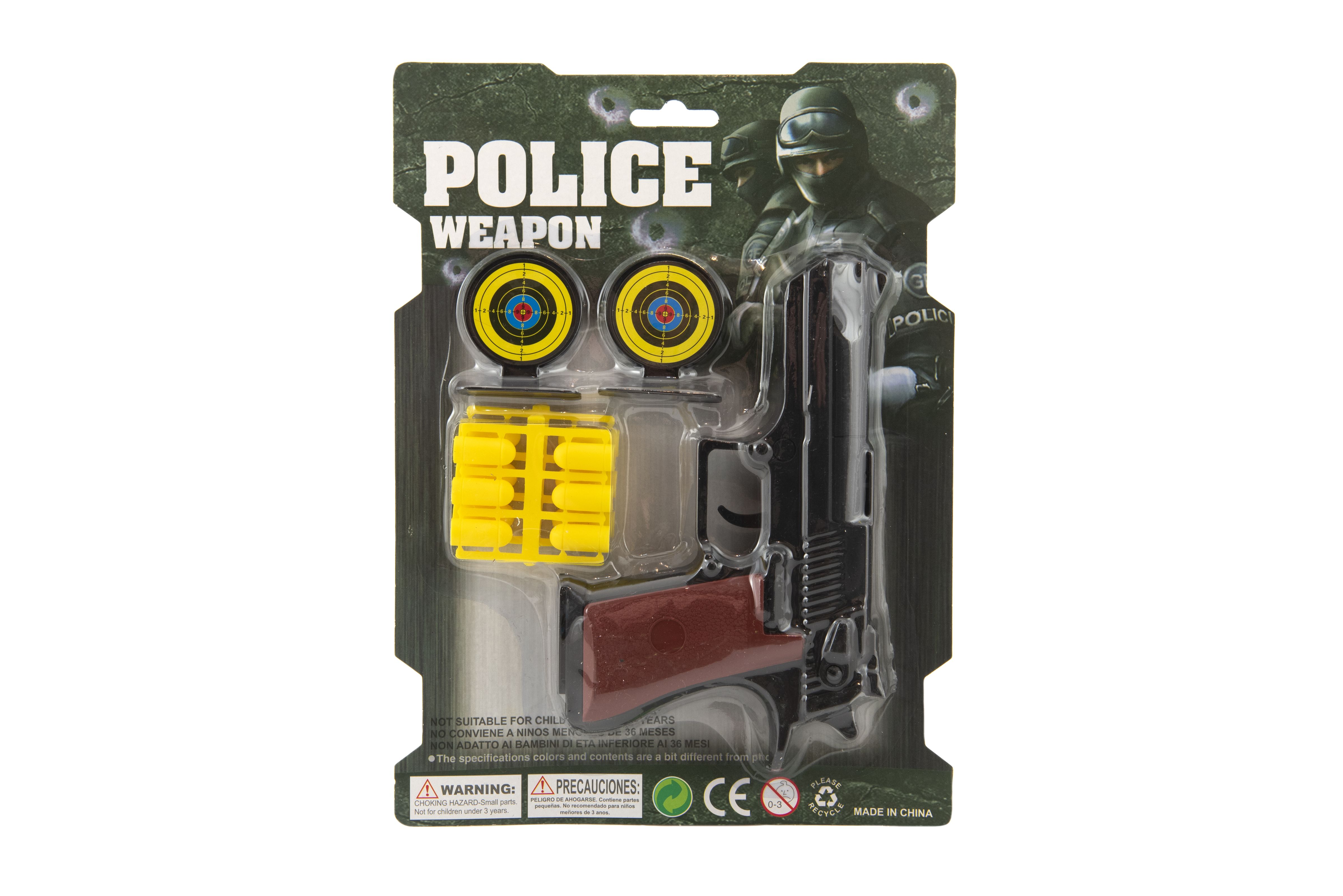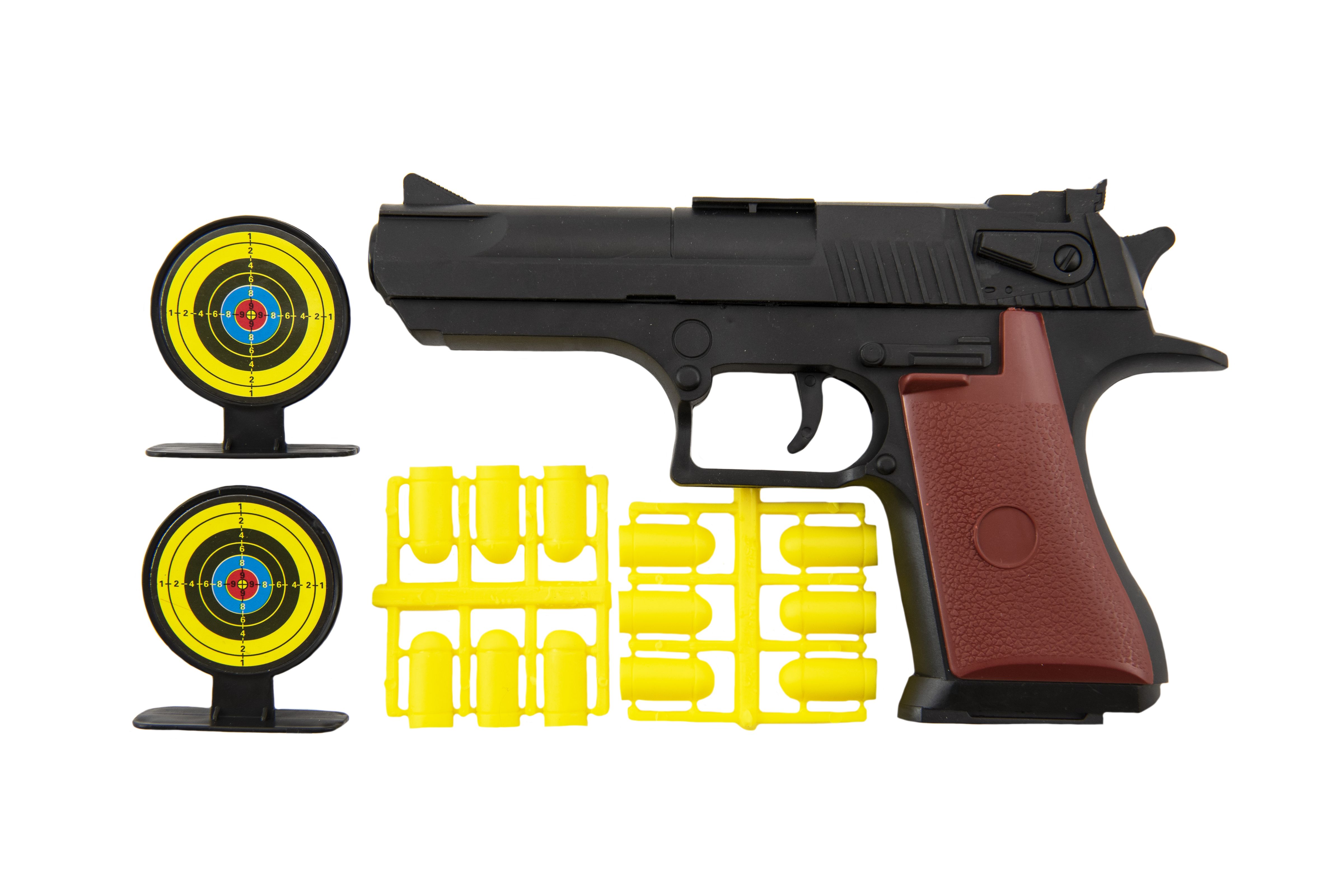 Pistole špuntovka 17cm plast + náboje 12ks + terč 2ks na kartě