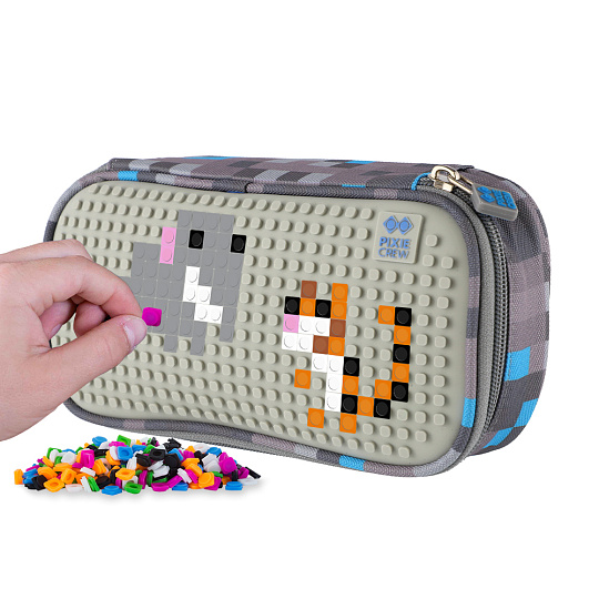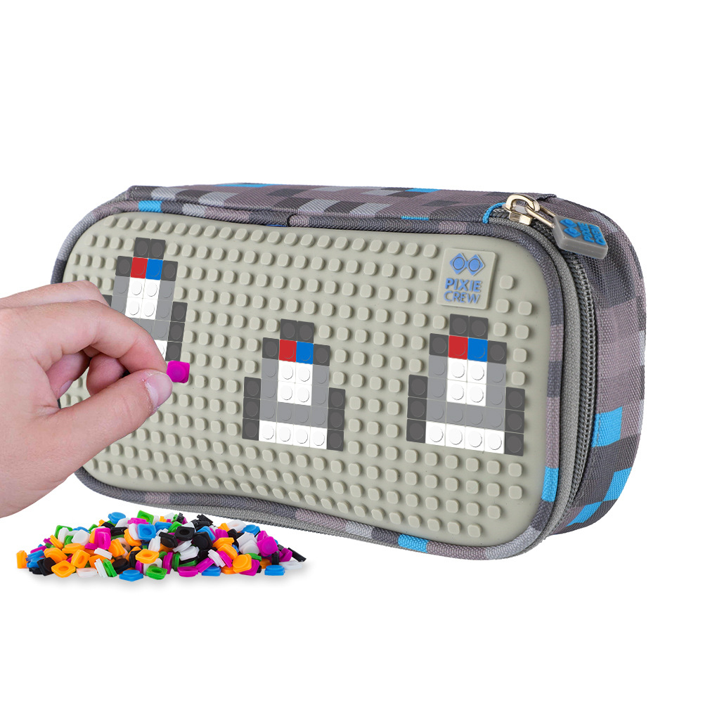 PIXIE CREW studentský penál Šedo-modrý