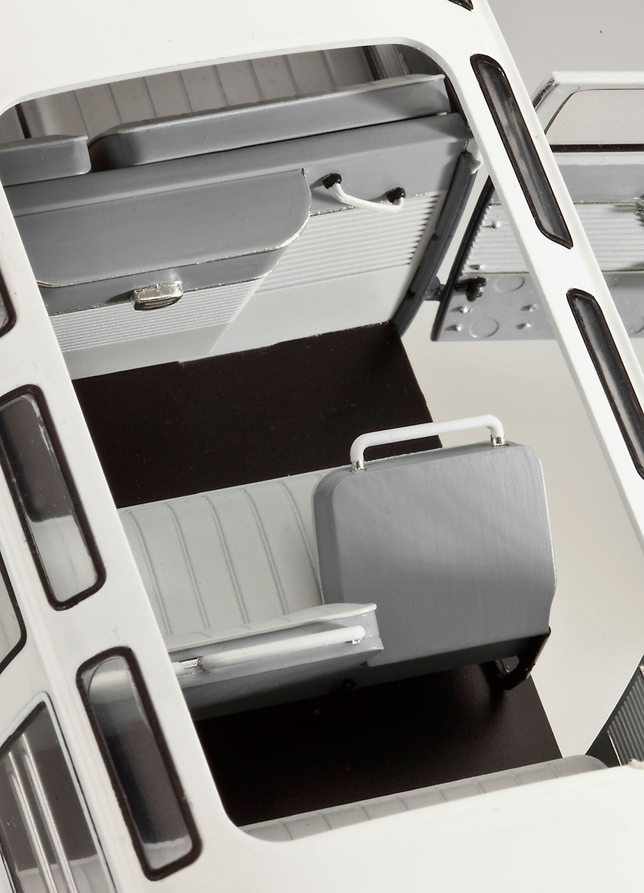 - Detailní vybavení interiéru s palubní deskou a lavicovými sedadly