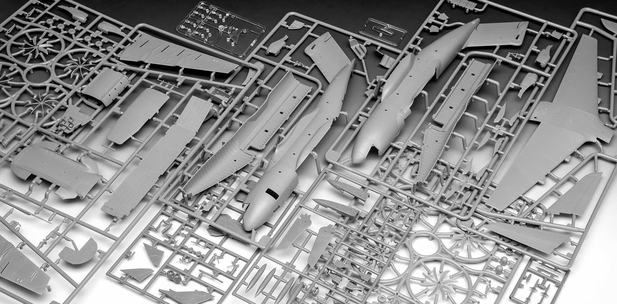Modely letadel ke slepení. Velikost: 1:144; 31,2 a 11,9 cm. Balení obsahuje: 223 dílků ke slepení.