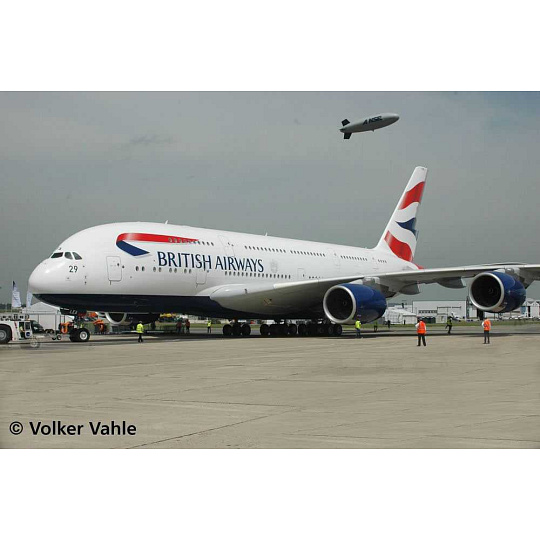 Model Airbusu A380, největšího masově vyráběného dopravního letadla. V roce 2013 obdržely British Airlines prvních 12 objednaných kusů. Ve standardním uspořádání pojme tento stroj 469 cestujících.