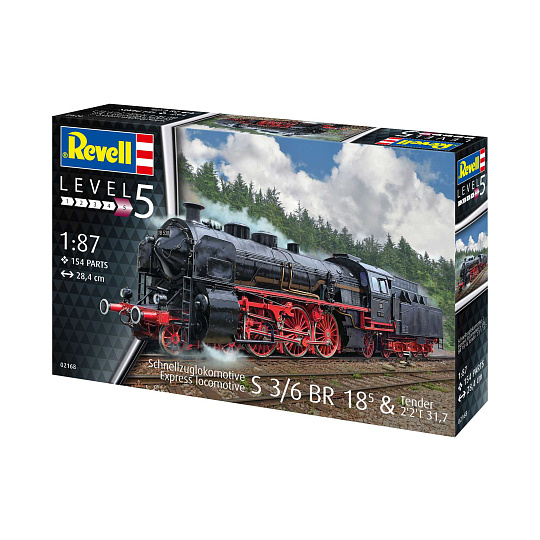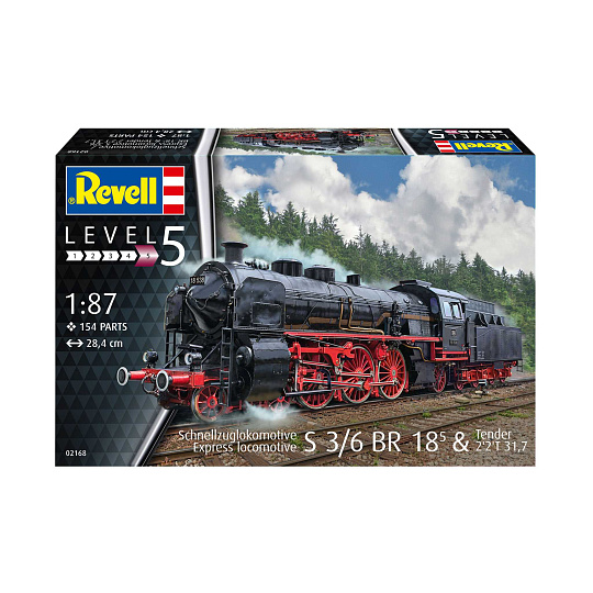 Revell Plastic ModelKit lokomotiva 02168 - Express locomotive S3/6 BR18(5) with Tender 2‘2’T (1:87)