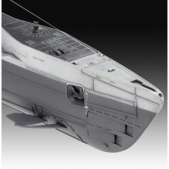 Model ponorky ke slepení. Velikost: 1:144; 53,1 cm. Balení obsahuje: 115 dílků ke slepení.