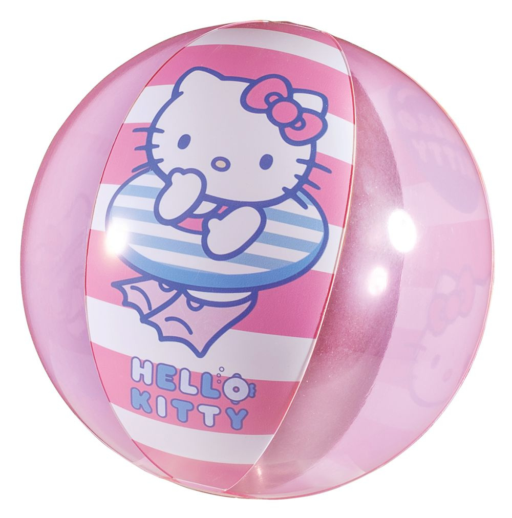 Plážový míč Hello Kitty, nafouknutý cca. 29 cm, vyfouknutý cca. 40 cm,3 panely transparentní růžová,3 panely s designem