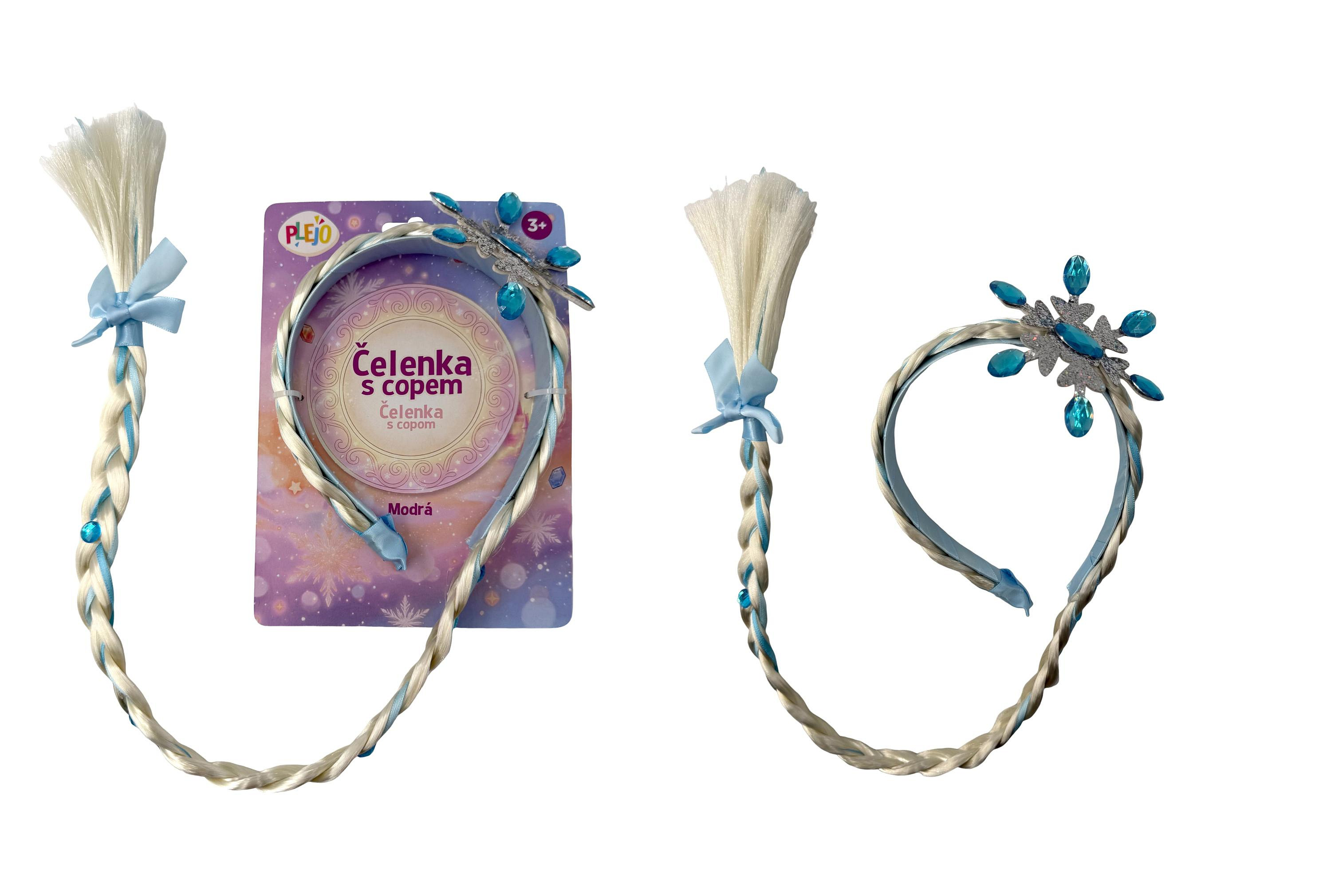 Proměňte se v ledovou královnu během vteřiny! Tato nádherná čelenka s dlouhým, bohatě pleteným copem je snem každé milovnice pohádek o ledovém království. Je to ten nejjednodušší a nejpůsobivější způsob, jak doladit princeznovský kostým k dokonalosti, ať už se chystáte na karneval, nebo si hrajete doma v pokojíčku.
