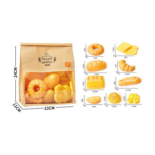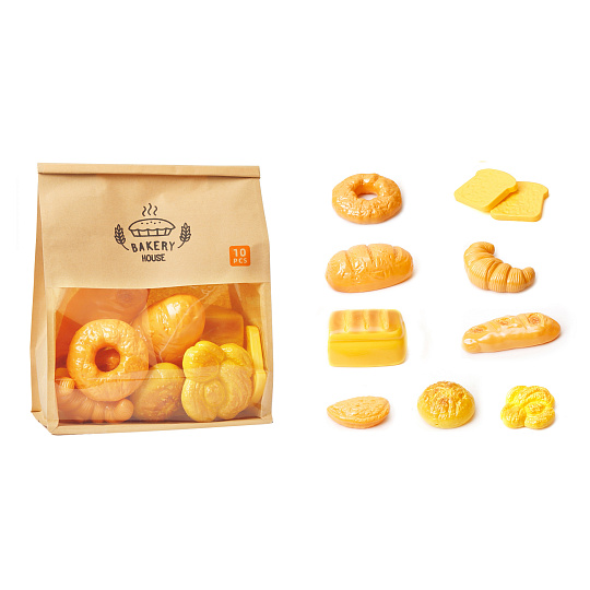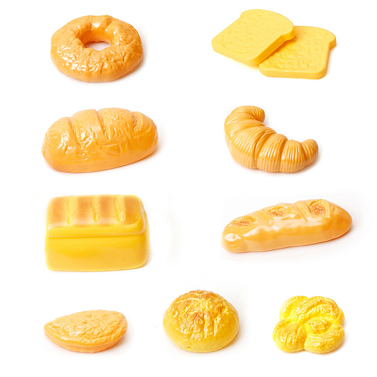Různé druhy pečiva rozšiřují možnosti hry a umožňují dětem hrát si na různé situace (snídaně, svačina, návštěva pekárny).