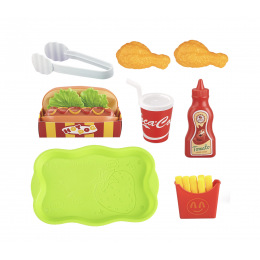 V sadě najdete vše, co potřebujete k přípravě chutného hot dogu, dokonce nápoj a kečup. Díky tomu si děti mohou skvěle hrát na prodávání, nakupování nebo vaření.