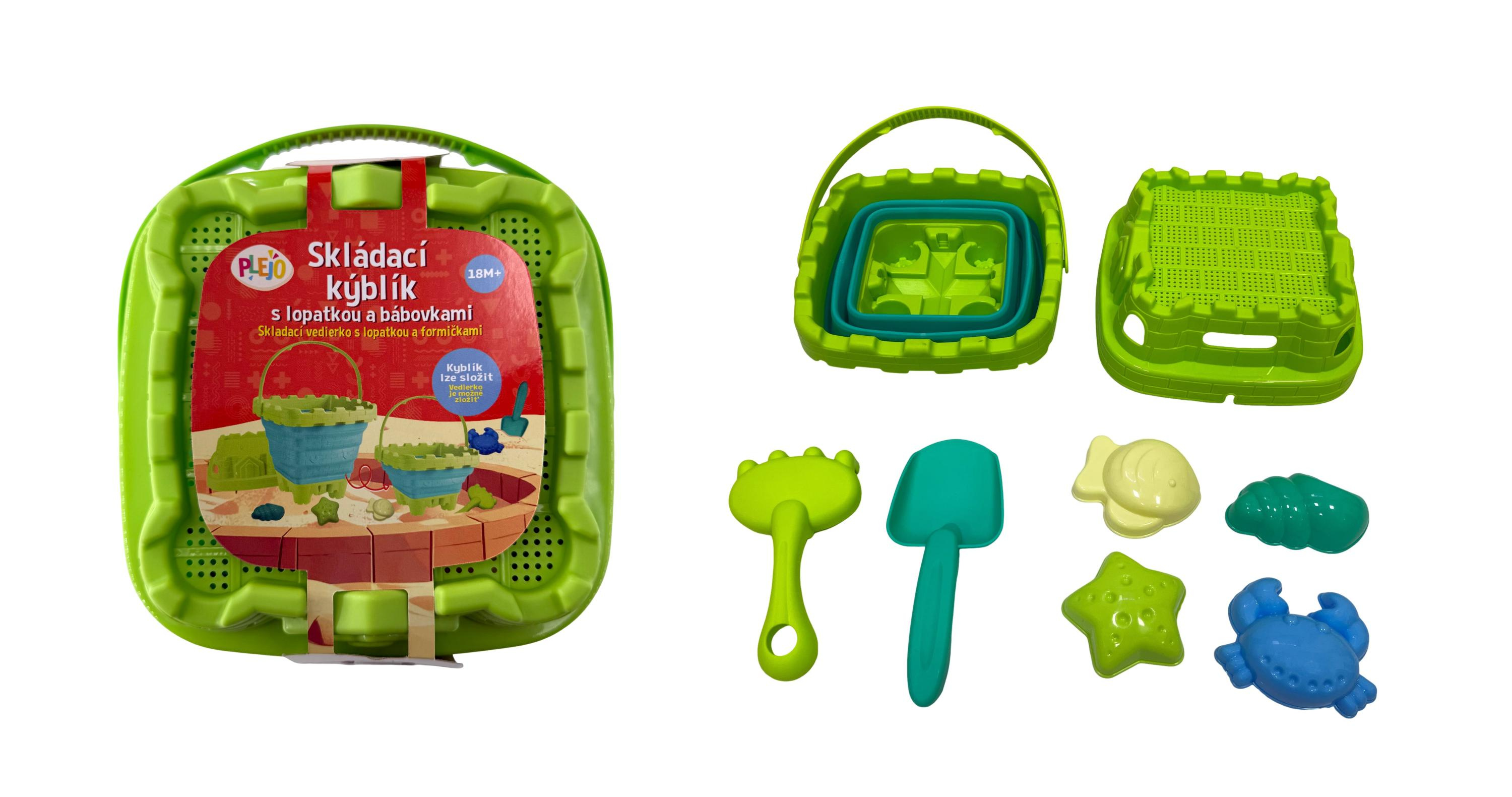 PLEJO Skládací kýblík s lopatkou a bábovkami