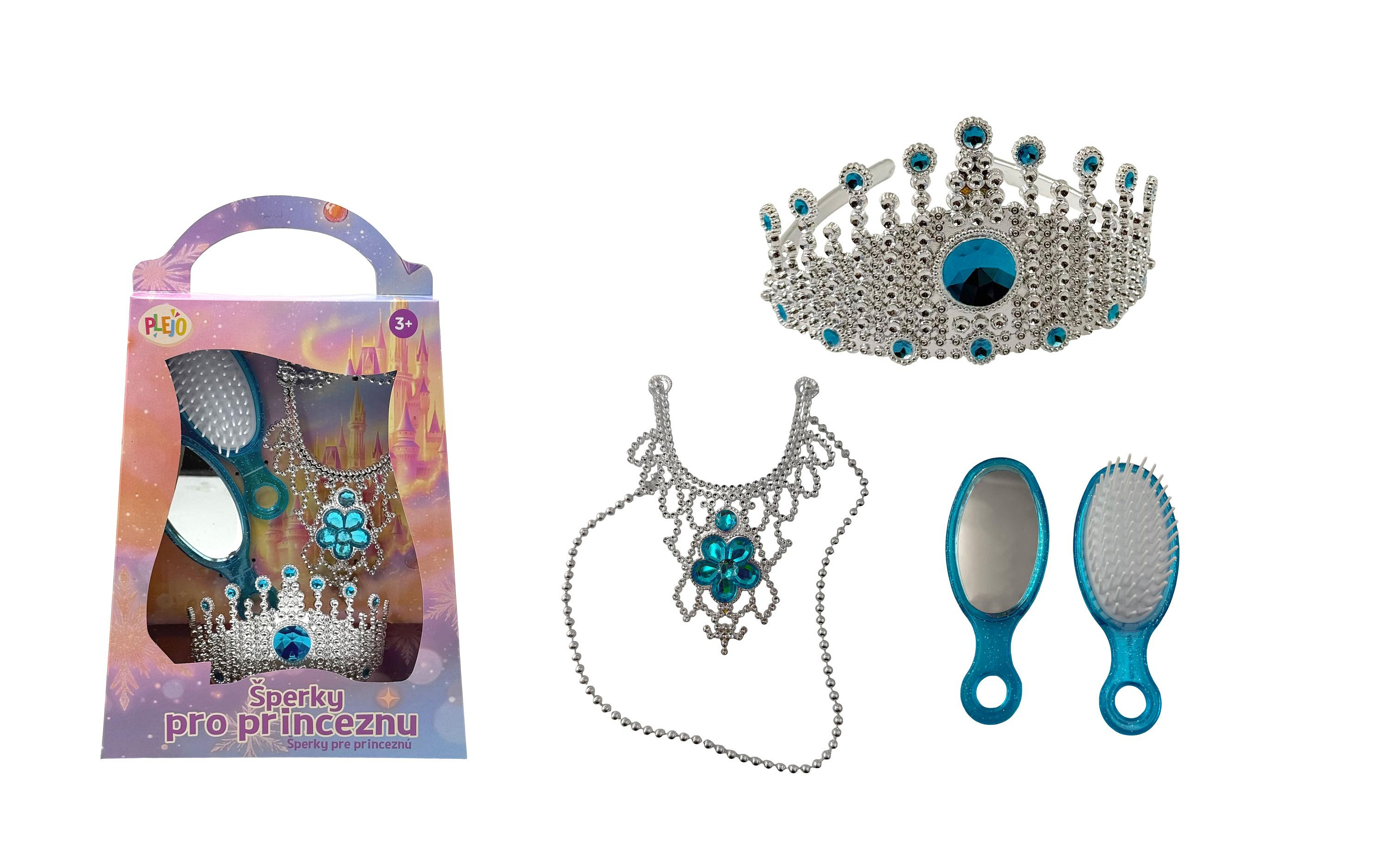 Splněný sen každé malé princezny! S touto sadou šperků značky PLEJO se každá malá holčička v mžiku promění v elegantní princeznu připravenou na královský bál. Jemné barvy, třpytivé detaily. Sada obsahuje: korunka, náhrdelník, hřeben a zrcátko.