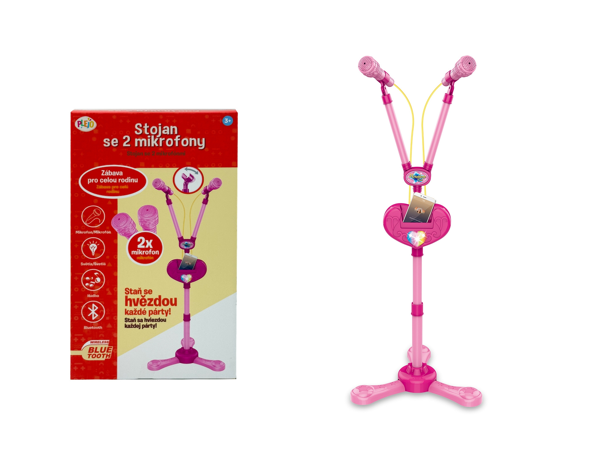 PLEJO Stojan se 2 mikrofony - růžová