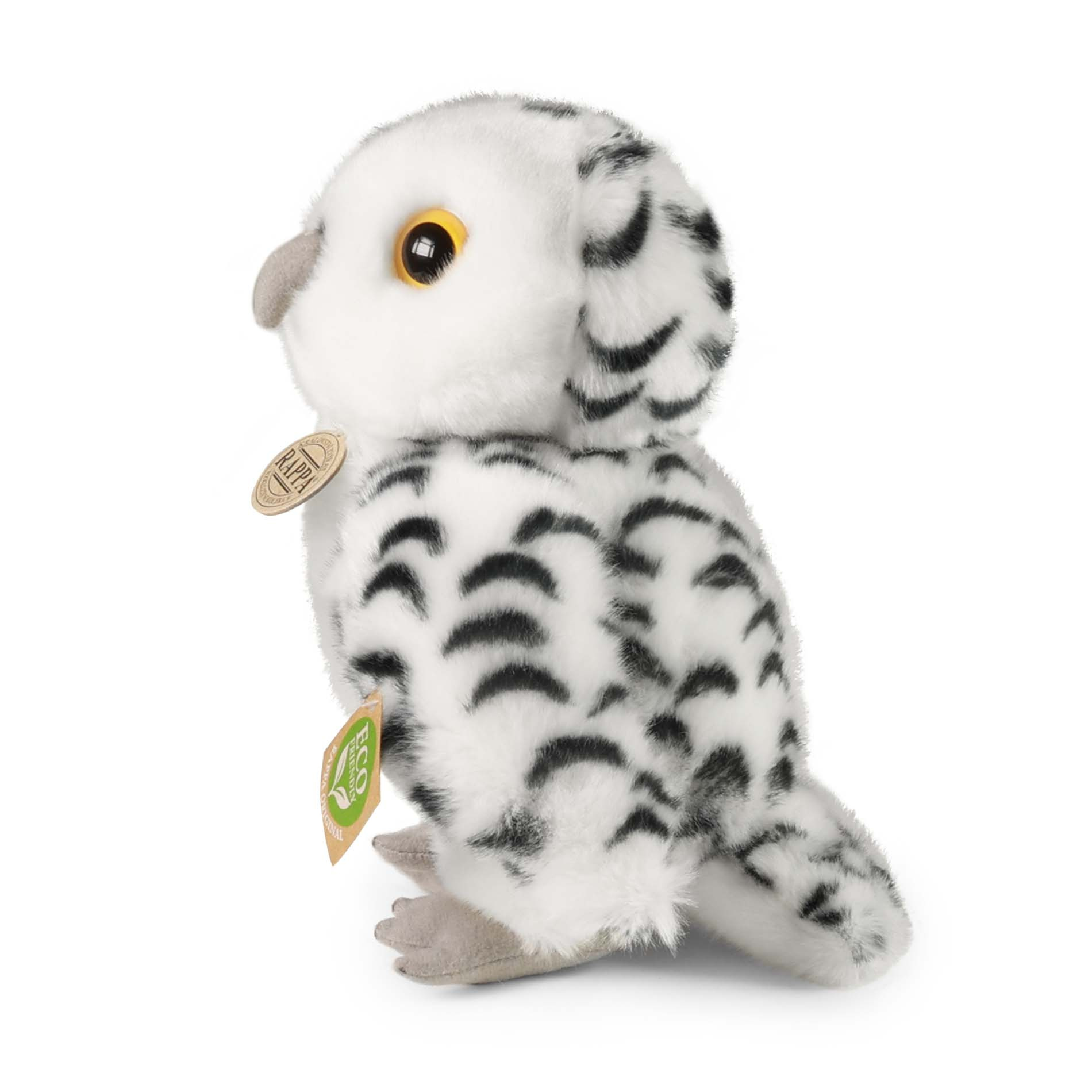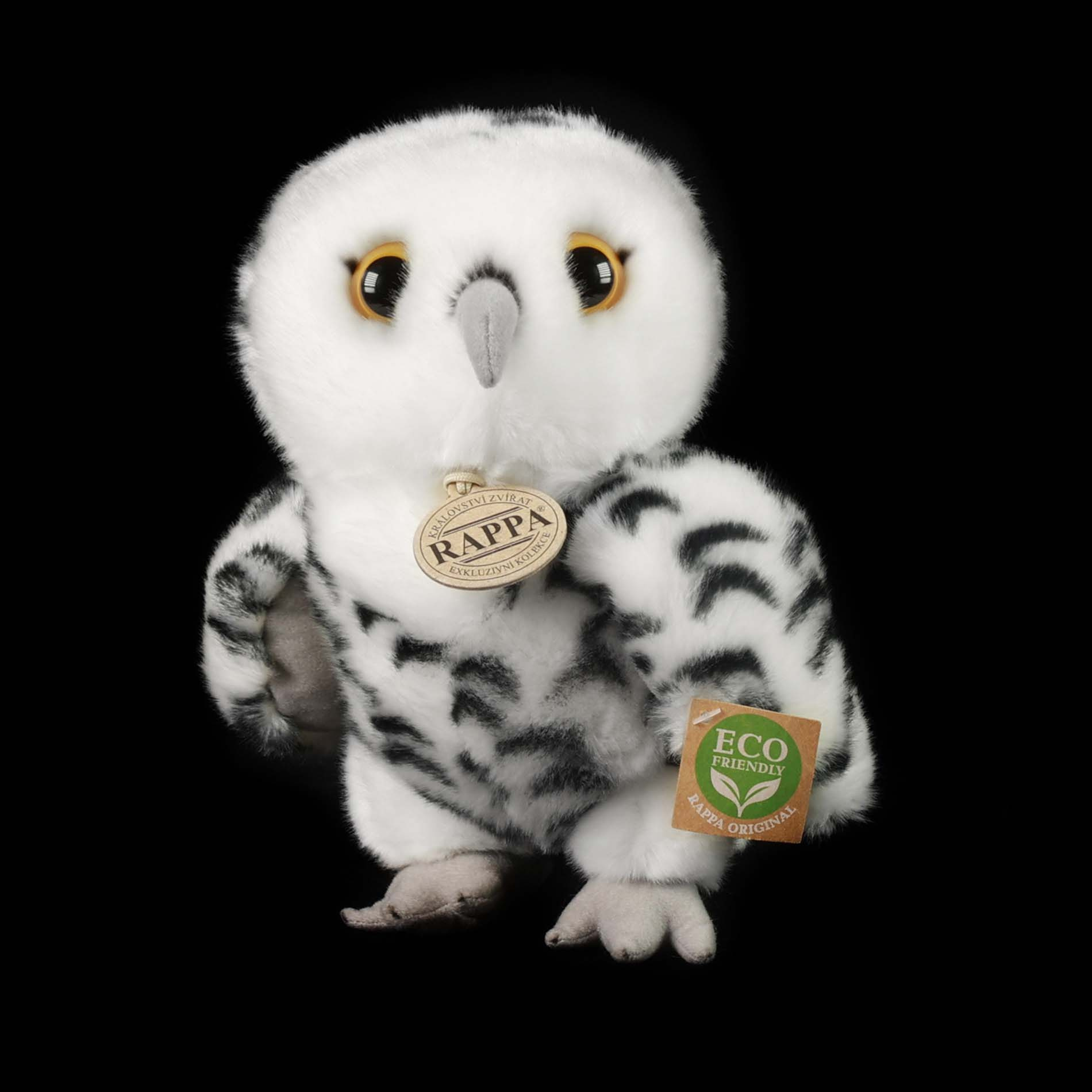 Plyšová sova sněžná měří 25 cm a díky těm nejkvalitnějším materiálům se řadí do Exkluzivní kolekce plyšových hraček značky Rappa. Díky ručnímu zpracování každého kusu navíc vypadá jako živá. Proč označení ECO-FRIENDLY? Rappa si je vědoma všech dopadů na životního prostředí, zaměřuje se na udržitelnost a omezení používání plastů na minimum. Proto je výplň hraček vyrobena z recyklovaných materiálů, zejména PET lahví. Ta je však zcela nezávadná a vhodná i pro děti od narození. FUN FACT: Věděli jste, že tento dravec sovice sněžná má velmi silné a ostré drápy, kterými chytá svou kořist?