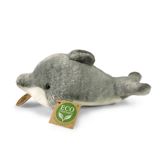 Plyšový delfín měří 19 cm a díky těm nejkvalitnějším materiálům se řadí do Exkluzivní kolekce plyšových hraček značky Rappa. Díky ručnímu zpracování každého kusu navíc vypadá jako živý. Proč označení ECO-FRIENDLY? Rappa si je vědoma všech dopadů na životního prostředí, zaměřuje se na udržitelnost a omezení používání plastů na minimum. Proto je výplň hraček vyrobena z recyklovaných materiálů, zejména PET lahví. Ta je však zcela nezávadná a vhodná i pro děti od narození. FUN FACT: Věděli jste, že delfíni když spí, mají vypnutou jen jednu mozkovou hemisféru, zatímco druhá zůstává aktivní?