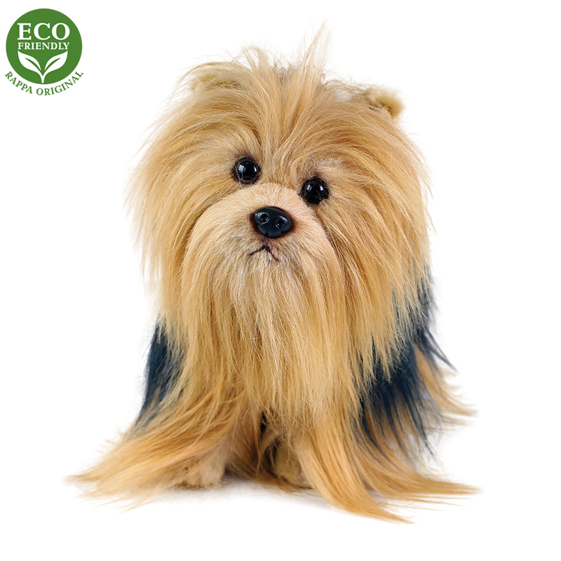 Plyšový pes rasy jorkšírský teriér měří 30 cm a díky těm nejkvalitnějším materiálům se řadí do Exkluzivní kolekce plyšových hraček značky Rappa. Díky ručnímu zpracování každého kusu navíc vypadá jako živý. Proč označení ECO-FRIENDLY? Rappa si je vědoma všech dopadů na životního prostředí, zaměřuje se na udržitelnost a omezení používání plastů na minimum. Proto je výplň hraček vyrobena z recyklovaných materiálů, zejména PET lahví. Ta je však zcela nezávadná a vhodná i pro děti od narození. FUN FACT: Věděli jste, že jorkšírští teriéři jsou známí svou dlouhou, hedvábnou srstí, která může dorůst až po zem, pokud se pravidelně upravuje?