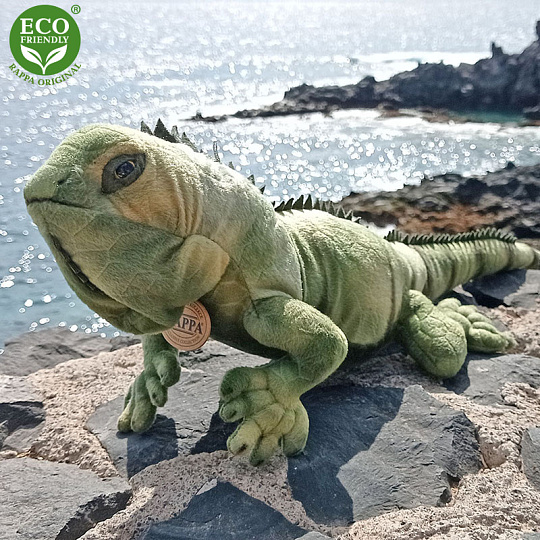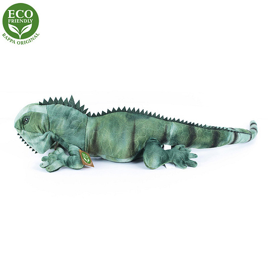 Plyšový leguán měří 68 cm a díky těm nejkvalitnějším materiálům se řadí do Exkluzivní kolekce plyšových hraček značky Rappa. Díky ručnímu zpracování každého kusu navíc vypadá jako živý. Proč označení ECO-FRIENDLY? Rappa si je vědoma všech dopadů na životního prostředí, zaměřuje se na udržitelnost a omezení používání plastů na minimum. Proto je výplň hraček vyrobena z recyklovaných materiálů, zejména PET lahví. Ta je však zcela nezávadná a vhodná i pro děti od narození. FUN FACT: Věděli jste, že leguáni dokážou měnit barvu své kůže podle nálady, teploty a prostředí?
