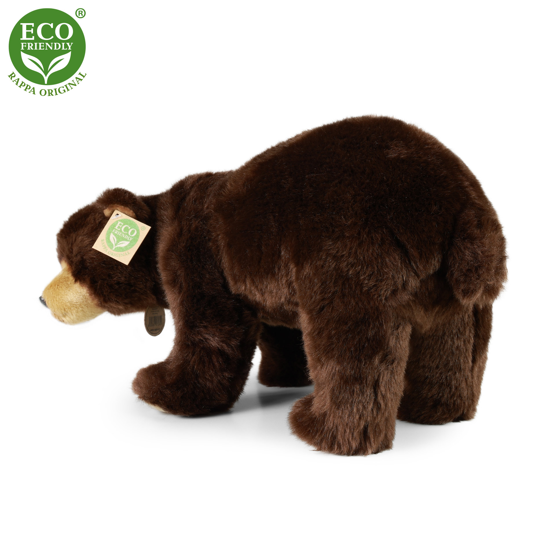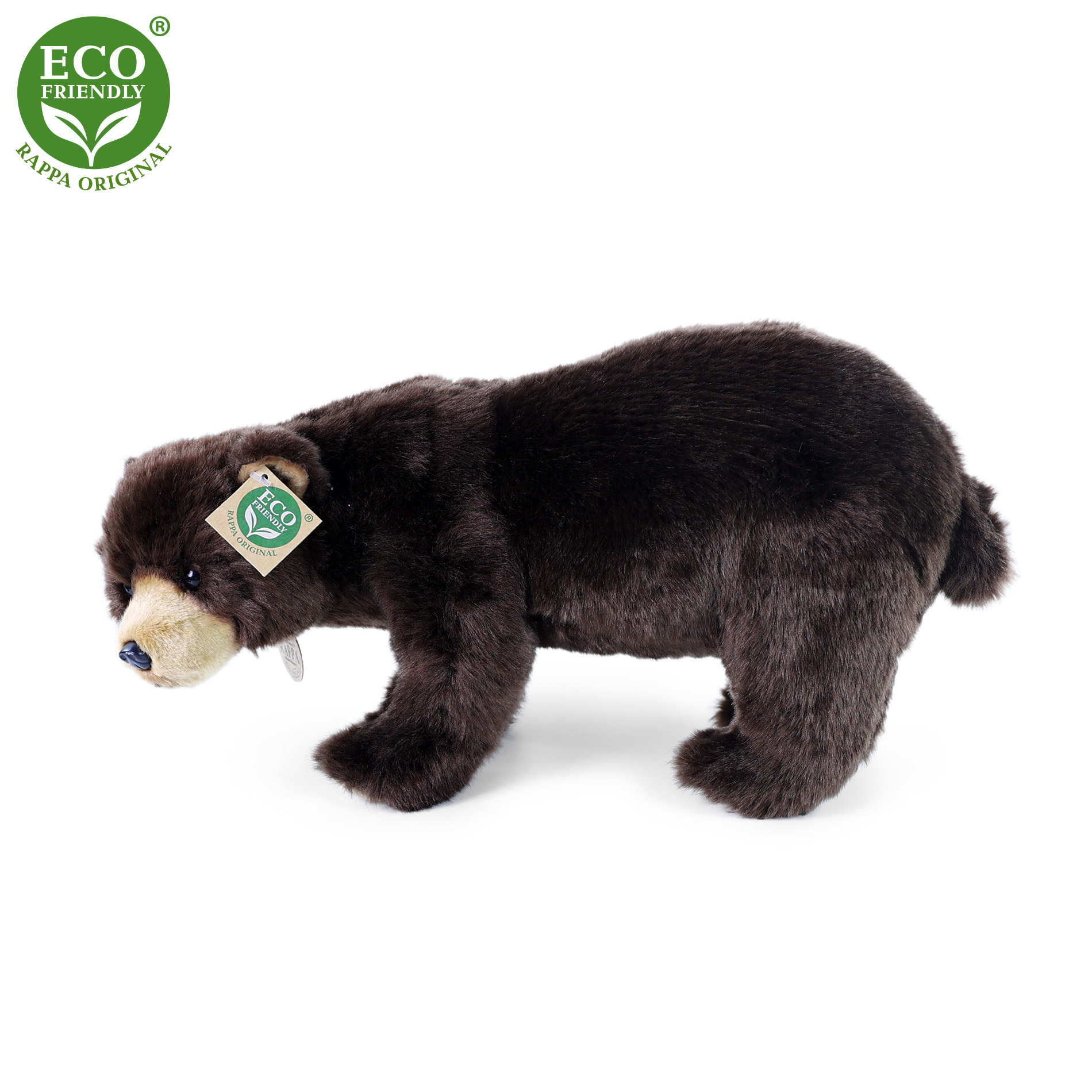 Plyšový medvěd hnědý měří 40 cm a díky těm nejkvalitnějším materiálům se řadí do Exkluzivní kolekce plyšových hraček značky Rappa. Díky ručnímu zpracování každého kusu navíc vypadá jako živý. Proč označení ECO-FRIENDLY? Rappa si je vědoma všech dopadů na životního prostředí, zaměřuje se na udržitelnost a omezení používání plastů na minimum. Proto je výplň hraček vyrobena z recyklovaných materiálů, zejména PET lahví. Ta je však zcela nezávadná a vhodná i pro děti od narození. FUN FACT: Věděli jste, že čich medvěda je 7x citlivější než čich psa?
