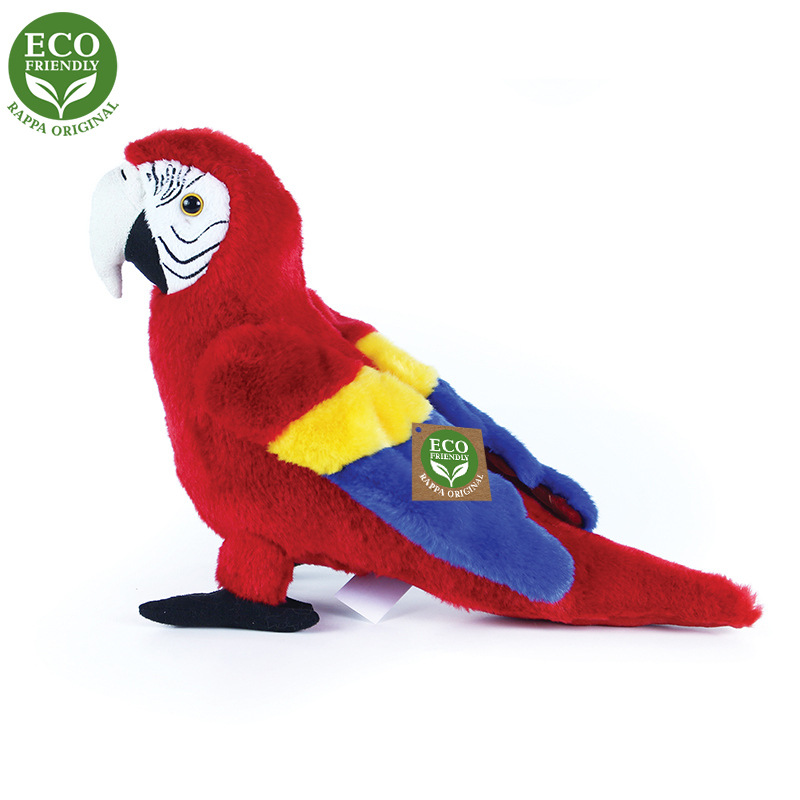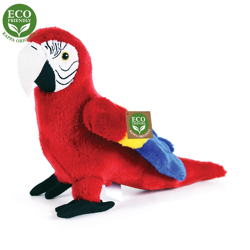 Plyšový pták papoušek červený ara měří 24 cm a díky těm nejkvalitnějším materiálům se řadí do Exkluzivní kolekce plyšových hraček značky Rappa. Díky ručnímu zpracování každého kusu navíc vypadá jako živý. Proč označení ECO-FRIENDLY? Rappa si je vědoma všech dopadů na životního prostředí, zaměřuje se na udržitelnost a omezení používání plastů na minimum. Proto je výplň hraček vyrobena z recyklovaných materiálů, zejména PET lahví. Ta je však zcela nezávadná a vhodná i pro děti od narození. FUN FACT: Věděli jste, že papoušci ara jsou velmi inteligentní a mají schopnost napodobovat lidskou řeč?